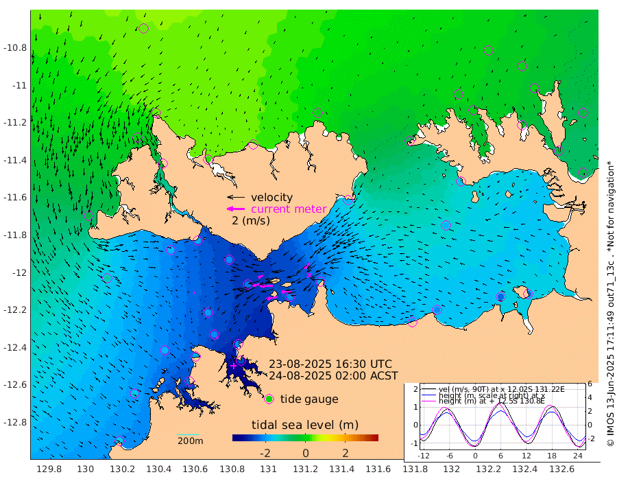 133cm/s -101T +4cm/s rms + 6cm/s 51T. Darwin_C1 52m 116cm/s -92T +4cm/s rms + 7cm/s -161T. Darwin_CW1 22m 77cm/s -106T +4cm/s rms + 8cm/s 61T. Darwin_CW2 34m 95cm/s -137T +3cm/s rms + 9cm/s 98T. Darwin_CW3 22m 141cm/s -91T +5cm/s rms + 7cm/s 88T. Darwin_C3 56m 60cm/s -116T +2cm/s rms + 9cm/s -126T. Darwin_CTbW 22m 17cm/s 126T +1cm/s rms + 1cm/s -47T. DARBGF 30m 26cm/s 144T +4cm/s rms + 3cm/s 80T. NRSDAR 19m 37cm Goodrich Bank -153cm Point Jenny -151cm Native Point -172cm Fish Reef -188cm Tapa Bay -50cm Point Fawcett (Offshore) -215cm Burge Point -170cm Munkunuwa -115cm Beagle A -213cm Parsons Bank -192cm Fenton Patches -216cm Hancox Shoal Area -213cm Nightcliff -248cm Darwin -213cm Charles Point Patches -204cm Glyde Point -204cm Chambers Bay -210cm Point Stuart -191cm Cape Hotham -178cm Christine Reef -228cm West Alligator Head -231cm East Field Island -169cm Two Hills Bay -170cm Camp Point -186cm Medina Inlet South -29cm South Barlow Point 2cm St. Asaph Bay 35cm Cape Van Dieman 26cm Snake Bay 27cm Cache Point 0cm Point Jahleel (Off) -71cm Cape Don -17cm Port Essington -7cm Smith Point - West -9cm NW Peacock Island 11cm North Of Jones Shoal 1cm Peacock Island -52cm Point David -14cm D'urville Point -56cm Copeland Island -48cm One Tree Point