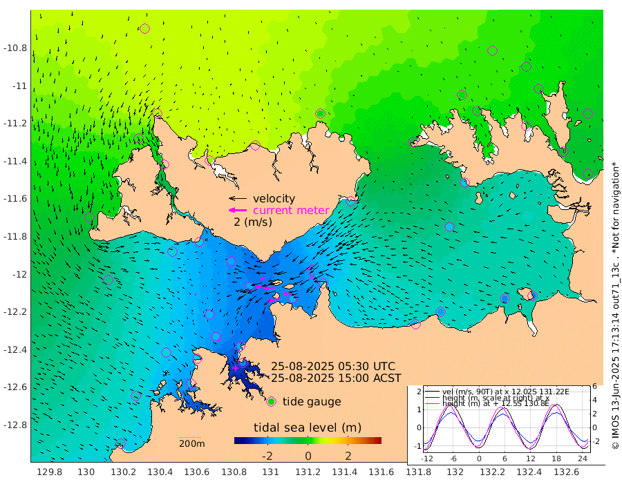 140cm/s -101T +4cm/s rms + 6cm/s 51T. Darwin_C1 52m 115cm/s -92T +4cm/s rms + 7cm/s -161T. Darwin_CW1 22m 72cm/s -106T +4cm/s rms + 8cm/s 61T. Darwin_CW2 34m 94cm/s -137T +3cm/s rms + 9cm/s 98T. Darwin_CW3 22m 132cm/s -91T +5cm/s rms + 7cm/s 88T. Darwin_C3 56m 65cm/s -116T +2cm/s rms + 9cm/s -126T. Darwin_CTbW 22m 17cm/s 121T +1cm/s rms + 1cm/s -47T. DARBGF 30m 26cm/s 145T +4cm/s rms + 3cm/s 80T. NRSDAR 19m 60cm Goodrich Bank -119cm Point Jenny -115cm Native Point -146cm Fish Reef -147cm Tapa Bay -18cm Point Fawcett (Offshore) -180cm Burge Point -138cm Munkunuwa -96cm Beagle A -181cm Parsons Bank -170cm Fenton Patches -181cm Hancox Shoal Area -183cm Nightcliff -209cm Darwin -169cm Charles Point Patches -177cm Glyde Point -182cm Chambers Bay -192cm Point Stuart -167cm Cape Hotham -163cm Christine Reef -213cm West Alligator Head -220cm East Field Island -150cm Two Hills Bay -139cm Camp Point -151cm Medina Inlet South -5cm South Barlow Point 26cm St. Asaph Bay 60cm Cape Van Dieman 53cm Snake Bay 49cm Cache Point 20cm Point Jahleel (Off) -46cm Cape Don 9cm Port Essington 10cm Smith Point - West 12cm NW Peacock Island 33cm North Of Jones Shoal 9cm Peacock Island -15cm Point David 6cm D'urville Point -22cm Copeland Island -14cm One Tree Point