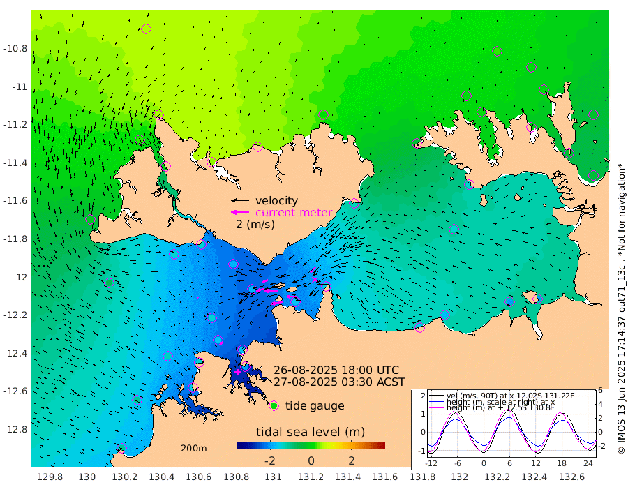 130cm/s -100T +4cm/s rms + 6cm/s 51T. Darwin_C1 52m 107cm/s -92T +4cm/s rms + 7cm/s -161T. Darwin_CW1 22m 78cm/s -106T +4cm/s rms + 8cm/s 61T. Darwin_CW2 34m 80cm/s -135T +3cm/s rms + 9cm/s 98T. Darwin_CW3 22m 148cm/s -91T +5cm/s rms + 7cm/s 88T. Darwin_C3 56m 61cm/s -116T +2cm/s rms + 9cm/s -126T. Darwin_CTbW 22m 15cm/s 126T +1cm/s rms + 1cm/s -47T. DARBGF 30m 25cm/s 148T +4cm/s rms + 3cm/s 80T. NRSDAR 19m 58cm Goodrich Bank -108cm Point Jenny -106cm Native Point -129cm Fish Reef -144cm Tapa Bay -18cm Point Fawcett (Offshore) -157cm Burge Point -135cm Munkunuwa -67cm Beagle A -172cm Parsons Bank -139cm Fenton Patches -174cm Hancox Shoal Area -166cm Nightcliff -201cm Darwin -166cm Charles Point Patches -164cm Glyde Point -168cm Chambers Bay -176cm Point Stuart -153cm Cape Hotham -139cm Christine Reef -194cm West Alligator Head -193cm East Field Island -138cm Two Hills Bay -129cm Camp Point -145cm Medina Inlet South -2cm South Barlow Point 28cm St. Asaph Bay 57cm Cape Van Dieman 47cm Snake Bay 50cm Cache Point 22cm Point Jahleel (Off) -45cm Cape Don 4cm Port Essington 11cm Smith Point - West 10cm NW Peacock Island 31cm North Of Jones Shoal 8cm Peacock Island -31cm Point David 5cm D'urville Point -35cm Copeland Island -26cm One Tree Point
