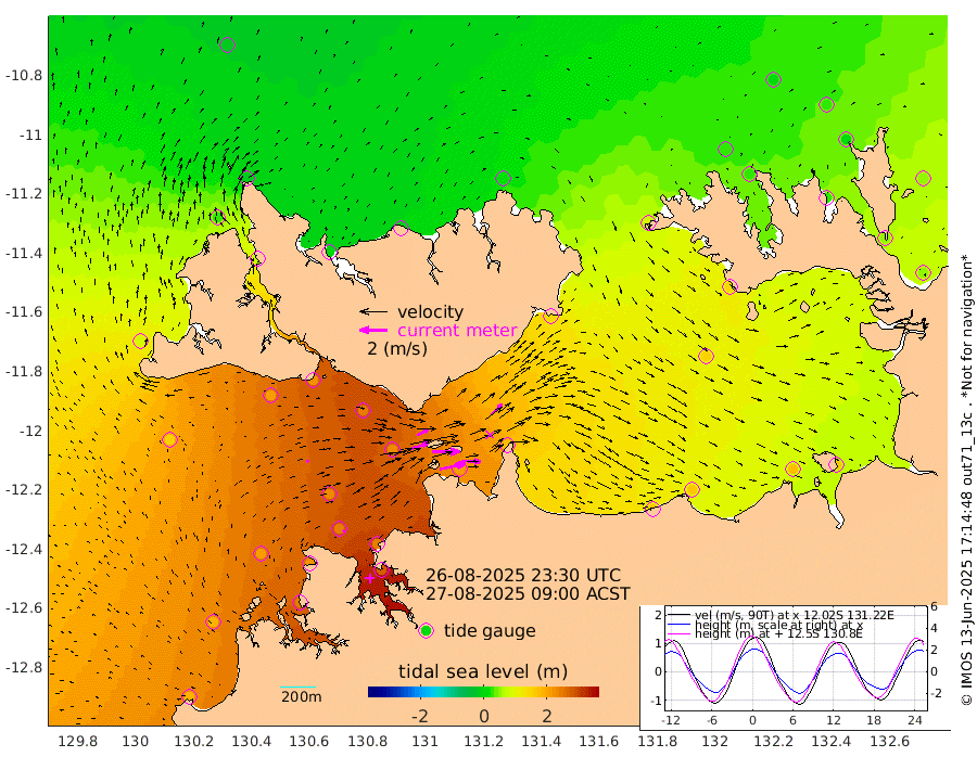 186cm/s 78T +4cm/s rms + 6cm/s 51T. Darwin_C1 52m 144cm/s 93T +4cm/s rms + 7cm/s -161T. Darwin_CW1 22m 123cm/s 72T +4cm/s rms + 8cm/s 61T. Darwin_CW2 34m 110cm/s 45T +3cm/s rms + 9cm/s 98T. Darwin_CW3 22m 201cm/s 89T +5cm/s rms + 7cm/s 88T. Darwin_C3 56m 89cm/s 65T +2cm/s rms + 9cm/s -126T. Darwin_CTbW 22m 21cm/s 64T +1cm/s rms + 1cm/s -47T. DARBGF 30m 12cm/s 56T +4cm/s rms + 3cm/s 80T. NRSDAR 19m -15cm Goodrich Bank 184cm Point Jenny 183cm Native Point 210cm Fish Reef 217cm Tapa Bay 82cm Point Fawcett (Offshore) 242cm Burge Point 209cm Munkunuwa 156cm Beagle A 244cm Parsons Bank 229cm Fenton Patches 236cm Hancox Shoal Area 245cm Nightcliff 277cm Darwin 243cm Charles Point Patches 204cm Glyde Point 167cm Chambers Bay 164cm Point Stuart 174cm Cape Hotham 147cm Christine Reef 176cm West Alligator Head 163cm East Field Island 146cm Two Hills Bay 140cm Camp Point 224cm Medina Inlet South 71cm South Barlow Point 31cm St. Asaph Bay -12cm Cape Van Dieman 0cm Snake Bay -7cm Cache Point 17cm Point Jahleel (Off) 79cm Cape Don 32cm Port Essington 29cm Smith Point - West 25cm NW Peacock Island 6cm North Of Jones Shoal 4cm Peacock Island 48cm Point David 33cm D'urville Point 51cm Copeland Island 49cm One Tree Point