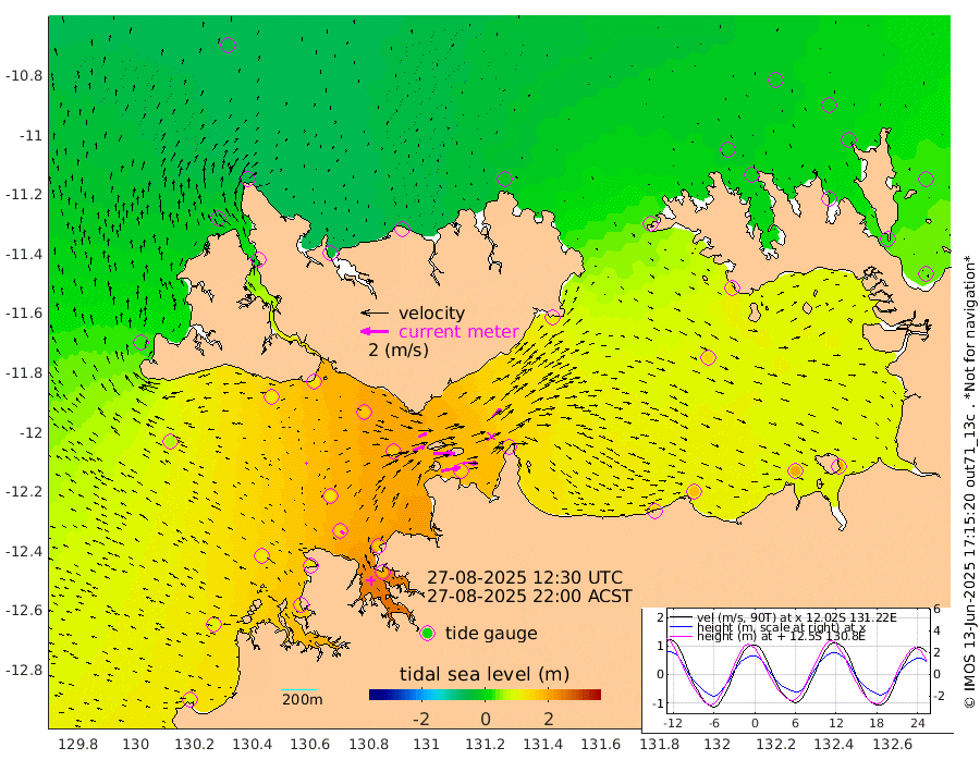 139cm/s 80T +4cm/s rms + 6cm/s 51T. Darwin_C1 52m 108cm/s 93T +4cm/s rms + 7cm/s -161T. Darwin_CW1 22m 88cm/s 71T +4cm/s rms + 8cm/s 61T. Darwin_CW2 34m 80cm/s 47T +3cm/s rms + 9cm/s 98T. Darwin_CW3 22m 151cm/s 89T +5cm/s rms + 7cm/s 88T. Darwin_C3 56m 65cm/s 66T +2cm/s rms + 9cm/s -126T. Darwin_CTbW 22m 13cm/s -49T +1cm/s rms + 1cm/s -47T. DARBGF 30m 31cm/s -43T +4cm/s rms + 3cm/s 80T. NRSDAR 19m -53cm Goodrich Bank 100cm Point Jenny 96cm Native Point 121cm Fish Reef 132cm Tapa Bay 24cm Point Fawcett (Offshore) 142cm Burge Point 122cm Munkunuwa 63cm Beagle A 158cm Parsons Bank 127cm Fenton Patches 164cm Hancox Shoal Area 161cm Nightcliff 184cm Darwin 151cm Charles Point Patches 154cm Glyde Point 166cm Chambers Bay 174cm Point Stuart 152cm Cape Hotham 140cm Christine Reef 193cm West Alligator Head 192cm East Field Island 140cm Two Hills Bay 123cm Camp Point 133cm Medina Inlet South 3cm South Barlow Point -21cm St. Asaph Bay -52cm Cape Van Dieman -43cm Snake Bay -42cm Cache Point -14cm Point Jahleel (Off) 47cm Cape Don -1cm Port Essington -3cm Smith Point - West -3cm NW Peacock Island -17cm North Of Jones Shoal -3cm Peacock Island 33cm Point David 2cm D'urville Point 39cm Copeland Island 31cm One Tree Point