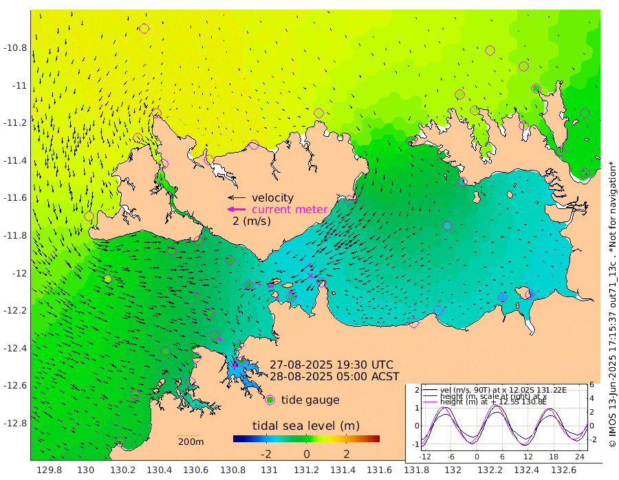 37cm/s -100T +4cm/s rms + 6cm/s 51T. Darwin_C1 52m 32cm/s -92T +4cm/s rms + 7cm/s -161T. Darwin_CW1 22m 19cm/s -105T +4cm/s rms + 8cm/s 61T. Darwin_CW2 34m 49cm/s -137T +3cm/s rms + 9cm/s 98T. Darwin_CW3 22m 67cm/s -90T +5cm/s rms + 7cm/s 88T. Darwin_C3 56m 4cm/s -115T +2cm/s rms + 9cm/s -126T. Darwin_CTbW 22m 52cm/s 98T +1cm/s rms + 1cm/s -47T. DARBGF 30m 60cm/s 130T +4cm/s rms + 3cm/s 80T. NRSDAR 19m 93cm Goodrich Bank 17cm Point Jenny 20cm Native Point 2cm Fish Reef -5cm Tapa Bay 71cm Point Fawcett (Offshore) -13cm Burge Point 4cm Munkunuwa 49cm Beagle A -33cm Parsons Bank -2cm Fenton Patches -45cm Hancox Shoal Area -25cm Nightcliff -51cm Darwin -20cm Charles Point Patches -79cm Glyde Point -139cm Chambers Bay -161cm Point Stuart -94cm Cape Hotham -114cm Christine Reef -185cm West Alligator Head -206cm East Field Island -106cm Two Hills Bay -90cm Camp Point -5cm Medina Inlet South 82cm South Barlow Point 93cm St. Asaph Bay 96cm Cape Van Dieman 92cm Snake Bay 86cm Cache Point 60cm Point Jahleel (Off) 3cm Cape Don 46cm Port Essington 52cm Smith Point - West 48cm NW Peacock Island 64cm North Of Jones Shoal 20cm Peacock Island 9cm Point David 46cm D'urville Point 3cm Copeland Island 14cm One Tree Point