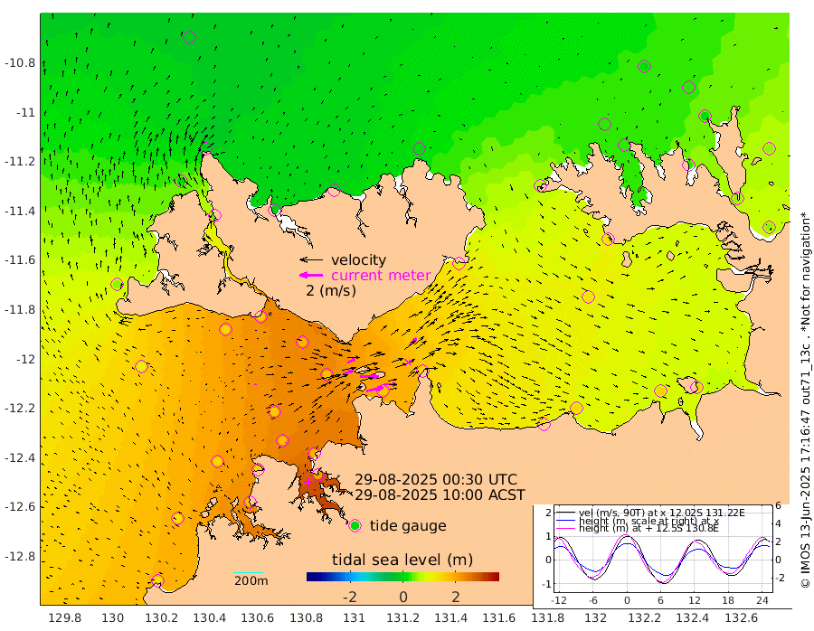 144cm/s 78T +4cm/s rms + 6cm/s 51T. Darwin_C1 52m 107cm/s 92T +4cm/s rms + 7cm/s -161T. Darwin_CW1 22m 93cm/s 73T +4cm/s rms + 8cm/s 61T. Darwin_CW2 34m 90cm/s 44T +3cm/s rms + 9cm/s 98T. Darwin_CW3 22m 160cm/s 89T +5cm/s rms + 7cm/s 88T. Darwin_C3 56m 71cm/s 66T +2cm/s rms + 9cm/s -126T. Darwin_CTbW 22m 9cm/s 34T +1cm/s rms + 1cm/s -47T. DARBGF 30m 11cm/s 4T +4cm/s rms + 3cm/s 80T. NRSDAR 19m -21cm Goodrich Bank 126cm Point Jenny 124cm Native Point 146cm Fish Reef 153cm Tapa Bay 47cm Point Fawcett (Offshore) 173cm Burge Point 144cm Munkunuwa 101cm Beagle A 183cm Parsons Bank 162cm Fenton Patches 179cm Hancox Shoal Area 185cm Nightcliff 209cm Darwin 178cm Charles Point Patches 161cm Glyde Point 145cm Chambers Bay 144cm Point Stuart 143cm Cape Hotham 128cm Christine Reef 155cm West Alligator Head 149cm East Field Island 127cm Two Hills Bay 119cm Camp Point 161cm Medina Inlet South 43cm South Barlow Point 9cm St. Asaph Bay -20cm Cape Van Dieman -5cm Snake Bay -14cm Cache Point 9cm Point Jahleel (Off) 66cm Cape Don 26cm Port Essington 24cm Smith Point - West 24cm NW Peacock Island 8cm North Of Jones Shoal 6cm Peacock Island 51cm Point David 31cm D'urville Point 55cm Copeland Island 53cm One Tree Point