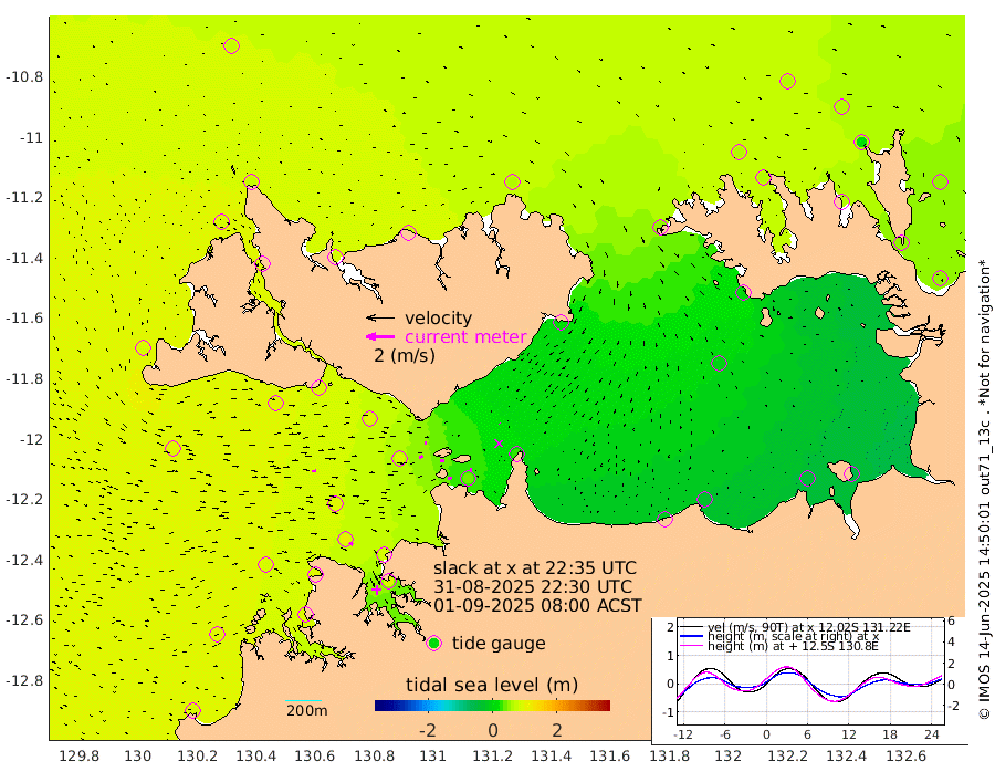 25cm/s 80T +4cm/s rms + 6cm/s 51T. Darwin_C1 52m 14cm/s 85T +4cm/s rms + 7cm/s -161T. Darwin_CW1 22m 25cm/s 75T +4cm/s rms + 8cm/s 61T. Darwin_CW2 34m 1cm/s 118T +3cm/s rms + 9cm/s 98T. Darwin_CW3 22m 30cm/s 88T +5cm/s rms + 7cm/s 88T. Darwin_C3 56m 15cm/s 62T +2cm/s rms + 9cm/s -126T. Darwin_CTbW 22m 29cm/s 90T +1cm/s rms + 1cm/s -47T. DARBGF 30m 28cm/s 123T +4cm/s rms + 3cm/s 80T. NRSDAR 19m 72cm Goodrich Bank 89cm Point Jenny 93cm Native Point 88cm Fish Reef 95cm Tapa Bay 87cm Point Fawcett (Offshore) 101cm Burge Point 98cm Munkunuwa 94cm Beagle A 92cm Parsons Bank 94cm Fenton Patches 80cm Hancox Shoal Area 85cm Nightcliff 95cm Darwin 102cm Charles Point Patches 44cm Glyde Point -13cm Chambers Bay -26cm Point Stuart 24cm Cape Hotham -8cm Christine Reef -37cm West Alligator Head -56cm East Field Island 2cm Two Hills Bay 15cm Camp Point 96cm Medina Inlet South 93cm South Barlow Point 84cm St. Asaph Bay 75cm Cape Van Dieman 81cm Snake Bay 69cm Cache Point 62cm Point Jahleel (Off) 46cm Cape Don 59cm Port Essington 58cm Smith Point - West 57cm NW Peacock Island 57cm North Of Jones Shoal 20cm Peacock Island 51cm Point David 58cm D'urville Point 46cm Copeland Island 50cm One Tree Point