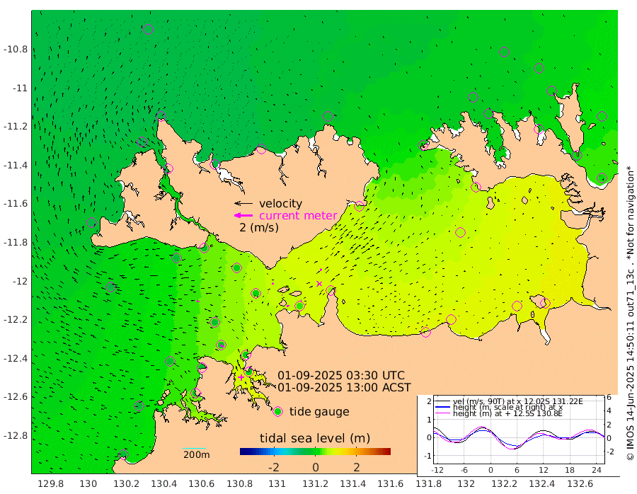 26cm/s 79T +4cm/s rms + 6cm/s 51T. Darwin_C1 52m 8cm/s 73T +4cm/s rms + 7cm/s -161T. Darwin_CW1 22m 2cm/s -67T +4cm/s rms + 8cm/s 61T. Darwin_CW2 34m 24cm/s 42T +3cm/s rms + 9cm/s 98T. Darwin_CW3 22m 8cm/s 101T +5cm/s rms + 7cm/s 88T. Darwin_C3 56m 19cm/s 64T +2cm/s rms + 9cm/s -126T. Darwin_CTbW 22m 31cm/s -85T +1cm/s rms + 1cm/s -47T. DARBGF 30m 38cm/s -54T +4cm/s rms + 3cm/s 80T. NRSDAR 19m -55cm Goodrich Bank -36cm Point Jenny -38cm Native Point -30cm Fish Reef -29cm Tapa Bay -55cm Point Fawcett (Offshore) -25cm Burge Point -41cm Munkunuwa -47cm Beagle A -10cm Parsons Bank -26cm Fenton Patches 0cm Hancox Shoal Area -3cm Nightcliff -3cm Darwin -22cm Charles Point Patches 31cm Glyde Point 78cm Chambers Bay 93cm Point Stuart 48cm Cape Hotham 65cm Christine Reef 105cm West Alligator Head 122cm East Field Island 63cm Two Hills Bay 51cm Camp Point -27cm Medina Inlet South -56cm South Barlow Point -63cm St. Asaph Bay -56cm Cape Van Dieman -48cm Snake Bay -48cm Cache Point -32cm Point Jahleel (Off) 3cm Cape Don -21cm Port Essington -22cm Smith Point - West -16cm NW Peacock Island -23cm North Of Jones Shoal -6cm Peacock Island 16cm Point David -13cm D'urville Point 20cm Copeland Island 14cm One Tree Point
