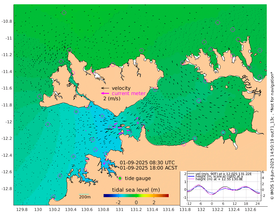 135cm/s -102T +4cm/s rms + 6cm/s 51T. Darwin_C1 52m 81cm/s -90T +4cm/s rms + 7cm/s -161T. Darwin_CW1 22m 56cm/s -105T +4cm/s rms + 8cm/s 61T. Darwin_CW2 34m 63cm/s -134T +3cm/s rms + 9cm/s 98T. Darwin_CW3 22m 90cm/s -90T +5cm/s rms + 7cm/s 88T. Darwin_C3 56m 87cm/s -115T +2cm/s rms + 9cm/s -126T. Darwin_CTbW 22m 12cm/s -110T +1cm/s rms + 1cm/s -47T. DARBGF 30m 6cm/s -122T +4cm/s rms + 3cm/s 80T. NRSDAR 19m -28cm Goodrich Bank -110cm Point Jenny -109cm Native Point -107cm Fish Reef -125cm Tapa Bay -69cm Point Fawcett (Offshore) -120cm Burge Point -101cm Munkunuwa -93cm Beagle A -123cm Parsons Bank -119cm Fenton Patches -133cm Hancox Shoal Area -140cm Nightcliff -140cm Darwin -129cm Charles Point Patches -117cm Glyde Point -113cm Chambers Bay -107cm Point Stuart -107cm Cape Hotham -108cm Christine Reef -115cm West Alligator Head -111cm East Field Island -101cm Two Hills Bay -96cm Camp Point -116cm Medina Inlet South -58cm South Barlow Point -46cm St. Asaph Bay -28cm Cape Van Dieman -36cm Snake Bay -34cm Cache Point -44cm Point Jahleel (Off) -68cm Cape Don -44cm Port Essington -48cm Smith Point - West -47cm NW Peacock Island -40cm North Of Jones Shoal -15cm Peacock Island -58cm Point David -49cm D'urville Point -57cm Copeland Island -56cm One Tree Point