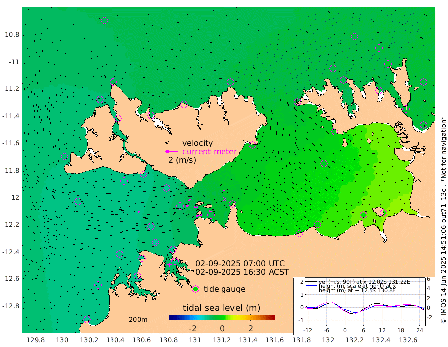 89cm/s -103T +4cm/s rms + 6cm/s 51T. Darwin_C1 52m 42cm/s -89T +4cm/s rms + 7cm/s -161T. Darwin_CW1 22m 47cm/s -106T +4cm/s rms + 8cm/s 61T. Darwin_CW2 34m 31cm/s -121T +3cm/s rms + 9cm/s 98T. Darwin_CW3 22m 64cm/s -91T +5cm/s rms + 7cm/s 88T. Darwin_C3 56m 54cm/s -116T +2cm/s rms + 9cm/s -126T. Darwin_CTbW 22m 28cm/s -94T +1cm/s rms + 1cm/s -47T. DARBGF 30m 22cm/s -69T +4cm/s rms + 3cm/s 80T. NRSDAR 19m -65cm Goodrich Bank -104cm Point Jenny -106cm Native Point -94cm Fish Reef -109cm Tapa Bay -87cm Point Fawcett (Offshore) -105cm Burge Point -105cm Munkunuwa -97cm Beagle A -103cm Parsons Bank -102cm Fenton Patches -99cm Hancox Shoal Area -102cm Nightcliff -104cm Darwin -109cm Charles Point Patches -60cm Glyde Point -17cm Chambers Bay -2cm Point Stuart -37cm Cape Hotham -29cm Christine Reef 2cm West Alligator Head 21cm East Field Island -24cm Two Hills Bay -28cm Camp Point -104cm Medina Inlet South -88cm South Barlow Point -80cm St. Asaph Bay -66cm Cape Van Dieman -68cm Snake Bay -63cm Cache Point -60cm Point Jahleel (Off) -52cm Cape Don -54cm Port Essington -60cm Smith Point - West -55cm NW Peacock Island -51cm North Of Jones Shoal -17cm Peacock Island -41cm Point David -56cm D'urville Point -38cm Copeland Island -41cm One Tree Point
