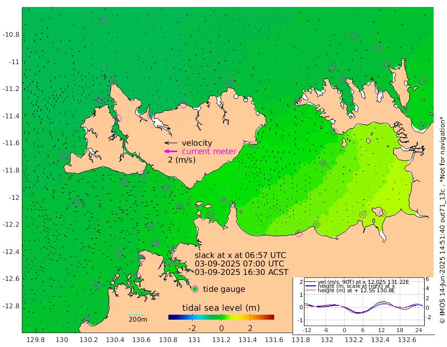 33cm/s -104T +4cm/s rms + 6cm/s 51T. Darwin_C1 52m 11cm/s -91T +4cm/s rms + 7cm/s -161T. Darwin_CW1 22m 19cm/s -103T +4cm/s rms + 8cm/s 61T. Darwin_CW2 34m 7cm/s -59T +3cm/s rms + 9cm/s 98T. Darwin_CW3 22m 28cm/s -92T +5cm/s rms + 7cm/s 88T. Darwin_C3 56m 21cm/s -117T +2cm/s rms + 9cm/s -126T. Darwin_CTbW 22m 18cm/s -92T +1cm/s rms + 1cm/s -47T. DARBGF 30m 15cm/s -65T +4cm/s rms + 3cm/s 80T. NRSDAR 19m -62cm Goodrich Bank -54cm Point Jenny -56cm Native Point -45cm Fish Reef -50cm Tapa Bay -61cm Point Fawcett (Offshore) -48cm Burge Point -54cm Munkunuwa -56cm Beagle A -44cm Parsons Bank -45cm Fenton Patches -37cm Hancox Shoal Area -35cm Nightcliff -39cm Darwin -50cm Charles Point Patches -13cm Glyde Point 19cm Chambers Bay 29cm Point Stuart 2cm Cape Hotham 3cm Christine Reef 35cm West Alligator Head 49cm East Field Island 7cm Two Hills Bay 5cm Camp Point -50cm Medina Inlet South -65cm South Barlow Point -65cm St. Asaph Bay -62cm Cape Van Dieman -60cm Snake Bay -59cm Cache Point -49cm Point Jahleel (Off) -31cm Cape Don -43cm Port Essington -46cm Smith Point - West -42cm NW Peacock Island -43cm North Of Jones Shoal -13cm Peacock Island -19cm Point David -41cm D'urville Point -15cm Copeland Island -22cm One Tree Point