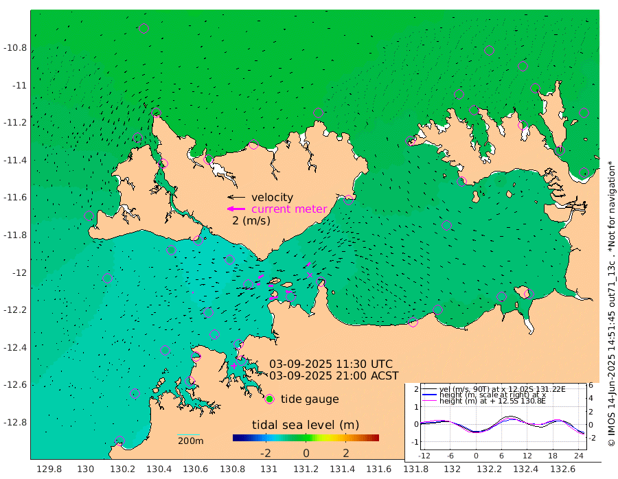 102cm/s -103T +4cm/s rms + 6cm/s 51T. Darwin_C1 52m 69cm/s -90T +4cm/s rms + 7cm/s -161T. Darwin_CW1 22m 36cm/s -106T +4cm/s rms + 8cm/s 61T. Darwin_CW2 34m 55cm/s -135T +3cm/s rms + 9cm/s 98T. Darwin_CW3 22m 50cm/s -89T +5cm/s rms + 7cm/s 88T. Darwin_C3 56m 68cm/s -115T +2cm/s rms + 9cm/s -126T. Darwin_CTbW 22m 14cm/s -98T +1cm/s rms + 1cm/s -47T. DARBGF 30m 8cm/s -75T +4cm/s rms + 3cm/s 80T. NRSDAR 19m -30cm Goodrich Bank -105cm Point Jenny -104cm Native Point -101cm Fish Reef -113cm Tapa Bay -70cm Point Fawcett (Offshore) -107cm Burge Point -82cm Munkunuwa -95cm Beagle A -98cm Parsons Bank -112cm Fenton Patches -110cm Hancox Shoal Area -121cm Nightcliff -116cm Darwin -114cm Charles Point Patches -103cm Glyde Point -101cm Chambers Bay -94cm Point Stuart -92cm Cape Hotham -93cm Christine Reef -99cm West Alligator Head -100cm East Field Island -85cm Two Hills Bay -90cm Camp Point -100cm Medina Inlet South -52cm South Barlow Point -46cm St. Asaph Bay -31cm Cape Van Dieman -35cm Snake Bay -38cm Cache Point -42cm Point Jahleel (Off) -62cm Cape Don -42cm Port Essington -43cm Smith Point - West -42cm NW Peacock Island -37cm North Of Jones Shoal -14cm Peacock Island -52cm Point David -44cm D'urville Point -52cm Copeland Island -50cm One Tree Point