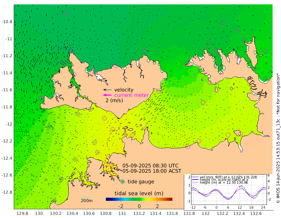 35cm/s 81T +4cm/s rms + 6cm/s 51T. Darwin_C1 52m 33cm/s 94T +4cm/s rms + 7cm/s -161T. Darwin_CW1 22m 29cm/s 67T +4cm/s rms + 8cm/s 61T. Darwin_CW2 34m 35cm/s 37T +3cm/s rms + 9cm/s 98T. Darwin_CW3 22m 40cm/s 89T +5cm/s rms + 7cm/s 88T. Darwin_C3 56m 13cm/s 66T +2cm/s rms + 9cm/s -126T. Darwin_CTbW 22m 9cm/s -73T +1cm/s rms + 1cm/s -47T. DARBGF 30m 13cm/s -52T +4cm/s rms + 3cm/s 80T. NRSDAR 19m -62cm Goodrich Bank 26cm Point Jenny 25cm Native Point 39cm Fish Reef 48cm Tapa Bay -25cm Point Fawcett (Offshore) 54cm Burge Point 38cm Munkunuwa 12cm Beagle A 59cm Parsons Bank 53cm Fenton Patches 68cm Hancox Shoal Area 72cm Nightcliff 76cm Darwin 55cm Charles Point Patches 66cm Glyde Point 76cm Chambers Bay 78cm Point Stuart 66cm Cape Hotham 55cm Christine Reef 86cm West Alligator Head 92cm East Field Island 52cm Two Hills Bay 57cm Camp Point 43cm Medina Inlet South -32cm South Barlow Point -46cm St. Asaph Bay -60cm Cape Van Dieman -55cm Snake Bay -58cm Cache Point -39cm Point Jahleel (Off) -4cm Cape Don -30cm Port Essington -33cm Smith Point - West -30cm NW Peacock Island -40cm North Of Jones Shoal -12cm Peacock Island 4cm Point David -26cm D'urville Point 10cm Copeland Island -3cm One Tree Point