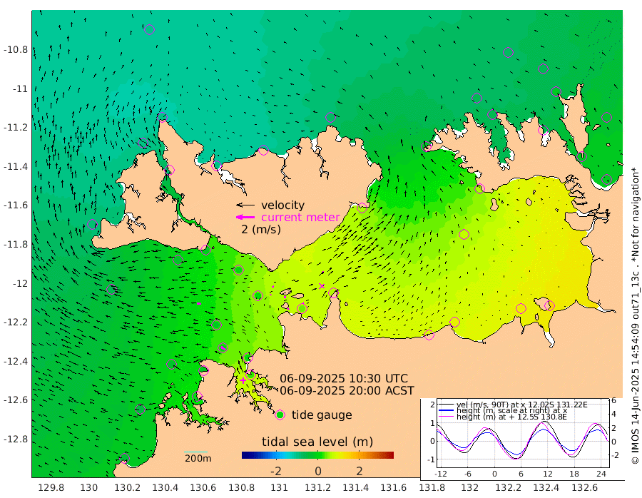 17cm/s -109T +4cm/s rms + 6cm/s 51T. Darwin_C1 52m 7cm/s 77T +4cm/s rms + 7cm/s -161T. Darwin_CW1 22m 8cm/s 52T +4cm/s rms + 8cm/s 61T. Darwin_CW2 34m 15cm/s 27T +3cm/s rms + 9cm/s 98T. Darwin_CW3 22m 21cm/s 90T +5cm/s rms + 7cm/s 88T. Darwin_C3 56m 18cm/s -117T +2cm/s rms + 9cm/s -126T. Darwin_CTbW 22m 45cm/s -84T +1cm/s rms + 1cm/s -47T. DARBGF 30m 55cm/s -55T +4cm/s rms + 3cm/s 80T. NRSDAR 19m -93cm Goodrich Bank -44cm Point Jenny -45cm Native Point -27cm Fish Reef -20cm Tapa Bay -85cm Point Fawcett (Offshore) -10cm Burge Point -27cm Munkunuwa -58cm Beagle A 3cm Parsons Bank -13cm Fenton Patches 18cm Hancox Shoal Area 10cm Nightcliff 24cm Darwin -3cm Charles Point Patches 45cm Glyde Point 92cm Chambers Bay 106cm Point Stuart 60cm Cape Hotham 68cm Christine Reef 123cm West Alligator Head 147cm East Field Island 61cm Two Hills Bay 60cm Camp Point -19cm Medina Inlet South -86cm South Barlow Point -94cm St. Asaph Bay -97cm Cape Van Dieman -91cm Snake Bay -92cm Cache Point -68cm Point Jahleel (Off) -29cm Cape Don -59cm Port Essington -64cm Smith Point - West -59cm NW Peacock Island -68cm North Of Jones Shoal -22cm Peacock Island -22cm Point David -58cm D'urville Point -16cm Copeland Island -28cm One Tree Point