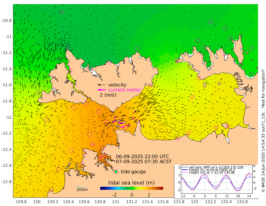 131cm/s 79T +4cm/s rms + 6cm/s 51T. Darwin_C1 52m 113cm/s 92T +4cm/s rms + 7cm/s -161T. Darwin_CW1 22m 92cm/s 71T +4cm/s rms + 8cm/s 61T. Darwin_CW2 34m 87cm/s 46T +3cm/s rms + 9cm/s 98T. Darwin_CW3 22m 146cm/s 90T +5cm/s rms + 7cm/s 88T. Darwin_C3 56m 65cm/s 66T +2cm/s rms + 9cm/s -126T. Darwin_CTbW 22m 11cm/s -26T +1cm/s rms + 1cm/s -47T. DARBGF 30m 23cm/s -38T +4cm/s rms + 3cm/s 80T. NRSDAR 19m -28cm Goodrich Bank 140cm Point Jenny 138cm Native Point 152cm Fish Reef 166cm Tapa Bay 46cm Point Fawcett (Offshore) 191cm Burge Point 151cm Munkunuwa 114cm Beagle A 178cm Parsons Bank 180cm Fenton Patches 185cm Hancox Shoal Area 199cm Nightcliff 216cm Darwin 187cm Charles Point Patches 172cm Glyde Point 170cm Chambers Bay 161cm Point Stuart 149cm Cape Hotham 153cm Christine Reef 178cm West Alligator Head 183cm East Field Island 128cm Two Hills Bay 140cm Camp Point 167cm Medina Inlet South 33cm South Barlow Point 7cm St. Asaph Bay -30cm Cape Van Dieman -23cm Snake Bay -25cm Cache Point -3cm Point Jahleel (Off) 51cm Cape Don -1cm Port Essington -5cm Smith Point - West -9cm NW Peacock Island -16cm North Of Jones Shoal -5cm Peacock Island 5cm Point David -7cm D'urville Point 7cm Copeland Island 9cm One Tree Point
