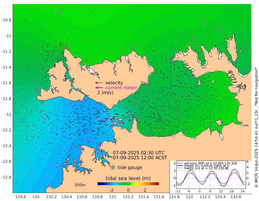 160cm/s -102T +4cm/s rms + 6cm/s 51T. Darwin_C1 52m 120cm/s -90T +4cm/s rms + 7cm/s -161T. Darwin_CW1 22m 91cm/s -108T +4cm/s rms + 8cm/s 61T. Darwin_CW2 34m 71cm/s -134T +3cm/s rms + 9cm/s 98T. Darwin_CW3 22m 117cm/s -91T +5cm/s rms + 7cm/s 88T. Darwin_C3 56m 91cm/s -115T +2cm/s rms + 9cm/s -126T. Darwin_CTbW 22m 44cm/s -93T +1cm/s rms + 1cm/s -47T. DARBGF 30m 39cm/s -67T +4cm/s rms + 3cm/s 80T. NRSDAR 19m 18cm Goodrich Bank -163cm Point Jenny -163cm Native Point -173cm Fish Reef -187cm Tapa Bay -73cm Point Fawcett (Offshore) -200cm Burge Point -183cm Munkunuwa -146cm Beagle A -193cm Parsons Bank -199cm Fenton Patches -189cm Hancox Shoal Area -214cm Nightcliff -207cm Darwin -183cm Charles Point Patches -133cm Glyde Point -80cm Chambers Bay -66cm Point Stuart -105cm Cape Hotham -74cm Christine Reef -68cm West Alligator Head -47cm East Field Island -66cm Two Hills Bay -72cm Camp Point -179cm Medina Inlet South -63cm South Barlow Point -34cm St. Asaph Bay 12cm Cape Van Dieman 6cm Snake Bay 13cm Cache Point -5cm Point Jahleel (Off) -38cm Cape Don -5cm Port Essington -10cm Smith Point - West -4cm NW Peacock Island 9cm North Of Jones Shoal 1cm Peacock Island -20cm Point David -12cm D'urville Point -23cm Copeland Island -15cm One Tree Point