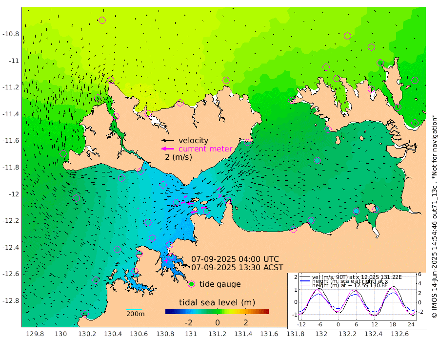 111cm/s -101T +4cm/s rms + 6cm/s 51T. Darwin_C1 52m 98cm/s -92T +4cm/s rms + 7cm/s -161T. Darwin_CW1 22m 62cm/s -107T +4cm/s rms + 8cm/s 61T. Darwin_CW2 34m 72cm/s -137T +3cm/s rms + 9cm/s 98T. Darwin_CW3 22m 105cm/s -91T +5cm/s rms + 7cm/s 88T. Darwin_C3 56m 54cm/s -115T +2cm/s rms + 9cm/s -126T. Darwin_CTbW 22m 11cm/s 130T +1cm/s rms + 1cm/s -47T. DARBGF 30m 16cm/s 153T +4cm/s rms + 3cm/s 80T. NRSDAR 19m 64cm Goodrich Bank -90cm Point Jenny -89cm Native Point -107cm Fish Reef -118cm Tapa Bay -2cm Point Fawcett (Offshore) -140cm Burge Point -112cm Munkunuwa -71cm Beagle A -137cm Parsons Bank -135cm Fenton Patches -143cm Hancox Shoal Area -158cm Nightcliff -164cm Darwin -128cm Charles Point Patches -130cm Glyde Point -131cm Chambers Bay -131cm Point Stuart -119cm Cape Hotham -115cm Christine Reef -147cm West Alligator Head -152cm East Field Island -98cm Two Hills Bay -101cm Camp Point -118cm Medina Inlet South 6cm South Barlow Point 30cm St. Asaph Bay 65cm Cape Van Dieman 57cm Snake Bay 61cm Cache Point 35cm Point Jahleel (Off) -13cm Cape Don 35cm Port Essington 34cm Smith Point - West 37cm NW Peacock Island 47cm North Of Jones Shoal 15cm Peacock Island 15cm Point David 34cm D'urville Point 10cm Copeland Island 17cm One Tree Point