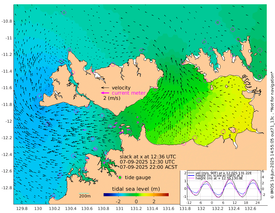 120cm/s -103T +4cm/s rms + 6cm/s 51T. Darwin_C1 52m 73cm/s -87T +4cm/s rms + 7cm/s -161T. Darwin_CW1 22m 68cm/s -109T +4cm/s rms + 8cm/s 61T. Darwin_CW2 34m 37cm/s -116T +3cm/s rms + 9cm/s 98T. Darwin_CW3 22m 70cm/s -92T +5cm/s rms + 7cm/s 88T. Darwin_C3 56m 74cm/s -116T +2cm/s rms + 9cm/s -126T. Darwin_CTbW 22m 77cm/s -89T +1cm/s rms + 1cm/s -47T. DARBGF 30m 75cm/s -57T +4cm/s rms + 3cm/s 80T. NRSDAR 19m -99cm Goodrich Bank -174cm Point Jenny -175cm Native Point -163cm Fish Reef -167cm Tapa Bay -156cm Point Fawcett (Offshore) -165cm Burge Point -169cm Munkunuwa -173cm Beagle A -146cm Parsons Bank -161cm Fenton Patches -125cm Hancox Shoal Area -146cm Nightcliff -137cm Darwin -154cm Charles Point Patches -54cm Glyde Point 41cm Chambers Bay 69cm Point Stuart -13cm Cape Hotham 25cm Christine Reef 89cm West Alligator Head 132cm East Field Island 18cm Two Hills Bay 8cm Camp Point -161cm Medina Inlet South -149cm South Barlow Point -136cm St. Asaph Bay -108cm Cape Van Dieman -106cm Snake Bay -101cm Cache Point -85cm Point Jahleel (Off) -69cm Cape Don -83cm Port Essington -87cm Smith Point - West -78cm NW Peacock Island -78cm North Of Jones Shoal -27cm Peacock Island -55cm Point David -83cm D'urville Point -49cm Copeland Island -57cm One Tree Point