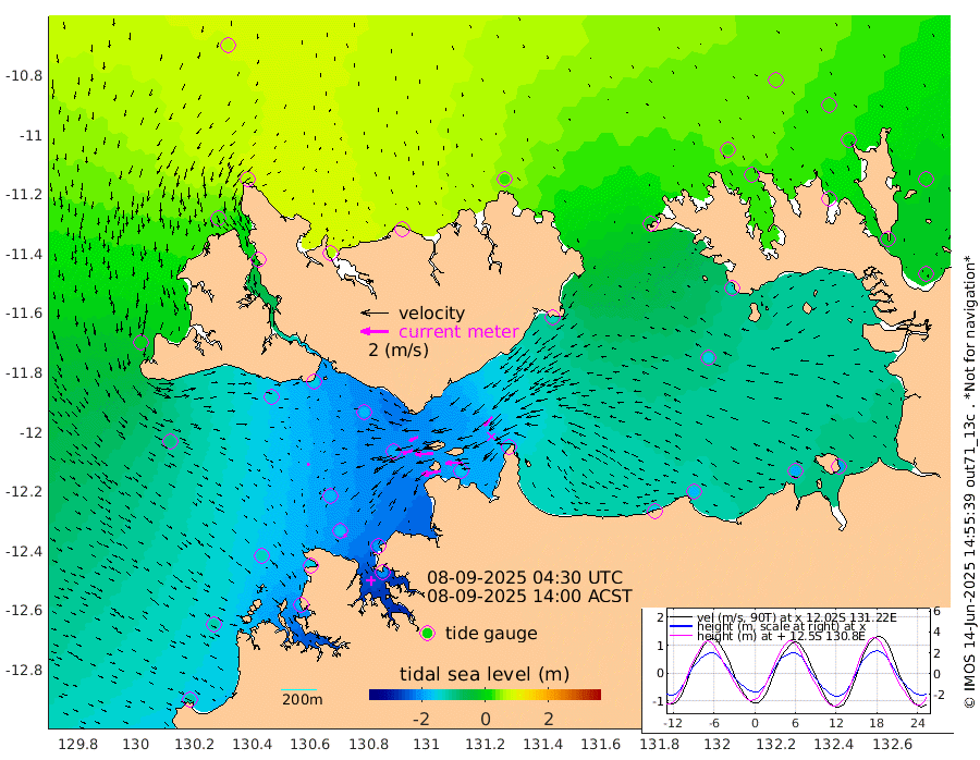 139cm/s -101T +4cm/s rms + 6cm/s 51T. Darwin_C1 52m 117cm/s -92T +4cm/s rms + 7cm/s -161T. Darwin_CW1 22m 73cm/s -106T +4cm/s rms + 8cm/s 61T. Darwin_CW2 34m 87cm/s -137T +3cm/s rms + 9cm/s 98T. Darwin_CW3 22m 129cm/s -91T +5cm/s rms + 7cm/s 88T. Darwin_C3 56m 70cm/s -116T +2cm/s rms + 9cm/s -126T. Darwin_CTbW 22m 14cm/s 125T +1cm/s rms + 1cm/s -47T. DARBGF 30m 22cm/s 149T +4cm/s rms + 3cm/s 80T. NRSDAR 19m 66cm Goodrich Bank -116cm Point Jenny -115cm Native Point -134cm Fish Reef -150cm Tapa Bay -10cm Point Fawcett (Offshore) -175cm Burge Point -139cm Munkunuwa -92cm Beagle A -175cm Parsons Bank -169cm Fenton Patches -183cm Hancox Shoal Area -196cm Nightcliff -206cm Darwin -164cm Charles Point Patches -168cm Glyde Point -169cm Chambers Bay -170cm Point Stuart -155cm Cape Hotham -151cm Christine Reef -190cm West Alligator Head -195cm East Field Island -131cm Two Hills Bay -133cm Camp Point -148cm Medina Inlet South -1cm South Barlow Point 30cm St. Asaph Bay 67cm Cape Van Dieman 56cm Snake Bay 61cm Cache Point 29cm Point Jahleel (Off) -30cm Cape Don 26cm Port Essington 26cm Smith Point - West 27cm NW Peacock Island 45cm North Of Jones Shoal 14cm Peacock Island -4cm Point David 22cm D'urville Point -10cm Copeland Island 1cm One Tree Point