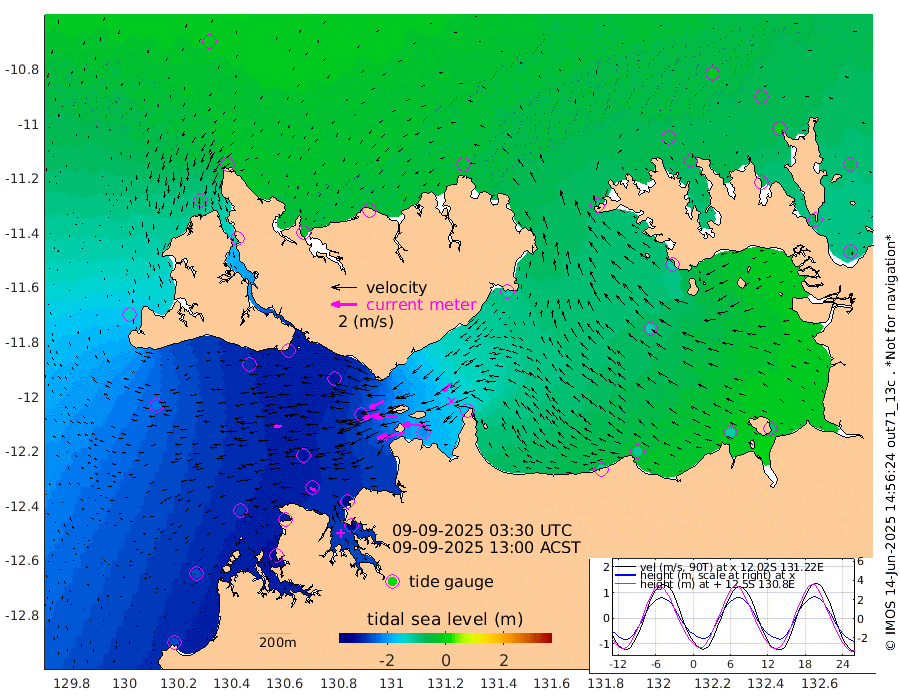 221cm/s -102T +4cm/s rms + 6cm/s 51T. Darwin_C1 52m 172cm/s -90T +4cm/s rms + 7cm/s -161T. Darwin_CW1 22m 132cm/s -107T +4cm/s rms + 8cm/s 61T. Darwin_CW2 34m 99cm/s -134T +3cm/s rms + 9cm/s 98T. Darwin_CW3 22m 184cm/s -91T +5cm/s rms + 7cm/s 88T. Darwin_C3 56m 124cm/s -115T +2cm/s rms + 9cm/s -126T. Darwin_CTbW 22m 57cm/s -95T +1cm/s rms + 1cm/s -47T. DARBGF 30m 47cm/s -70T +4cm/s rms + 3cm/s 80T. NRSDAR 19m -11cm Goodrich Bank -249cm Point Jenny -249cm Native Point -263cm Fish Reef -282cm Tapa Bay -131cm Point Fawcett (Offshore) -300cm Burge Point -272cm Munkunuwa -224cm Beagle A -295cm Parsons Bank -294cm Fenton Patches -286cm Hancox Shoal Area -307cm Nightcliff -316cm Darwin -288cm Charles Point Patches -209cm Glyde Point -128cm Chambers Bay -111cm Point Stuart -168cm Cape Hotham -120cm Christine Reef -113cm West Alligator Head -81cm East Field Island -117cm Two Hills Bay -121cm Camp Point -273cm Medina Inlet South -118cm South Barlow Point -76cm St. Asaph Bay -20cm Cape Van Dieman -29cm Snake Bay -20cm Cache Point -41cm Point Jahleel (Off) -86cm Cape Don -47cm Port Essington -53cm Smith Point - West -46cm NW Peacock Island -22cm North Of Jones Shoal -10cm Peacock Island -68cm Point David -57cm D'urville Point -71cm Copeland Island -60cm One Tree Point