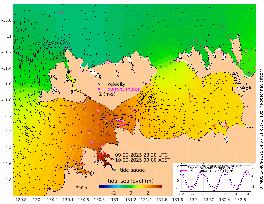 159cm/s 79T +4cm/s rms + 6cm/s 51T. Darwin_C1 52m 123cm/s 93T +4cm/s rms + 7cm/s -161T. Darwin_CW1 22m 103cm/s 71T +4cm/s rms + 8cm/s 61T. Darwin_CW2 34m 107cm/s 45T +3cm/s rms + 9cm/s 98T. Darwin_CW3 22m 174cm/s 90T +5cm/s rms + 7cm/s 88T. Darwin_C3 56m 74cm/s 65T +2cm/s rms + 9cm/s -126T. Darwin_CTbW 22m 25cm/s -62T +1cm/s rms + 1cm/s -47T. DARBGF 30m 42cm/s -42T +4cm/s rms + 3cm/s 80T. NRSDAR 19m -75cm Goodrich Bank 128cm Point Jenny 126cm Native Point 143cm Fish Reef 164cm Tapa Bay 4cm Point Fawcett (Offshore) 196cm Burge Point 153cm Munkunuwa 91cm Beagle A 200cm Parsons Bank 181cm Fenton Patches 204cm Hancox Shoal Area 211cm Nightcliff 232cm Darwin 182cm Charles Point Patches 194cm Glyde Point 202cm Chambers Bay 207cm Point Stuart 179cm Cape Hotham 183cm Christine Reef 230cm West Alligator Head 237cm East Field Island 159cm Two Hills Bay 160cm Camp Point 164cm Medina Inlet South -3cm South Barlow Point -41cm St. Asaph Bay -75cm Cape Van Dieman -62cm Snake Bay -69cm Cache Point -33cm Point Jahleel (Off) 43cm Cape Don -23cm Port Essington -27cm Smith Point - West -26cm NW Peacock Island -50cm North Of Jones Shoal -15cm Peacock Island 15cm Point David -21cm D'urville Point 20cm Copeland Island 10cm One Tree Point