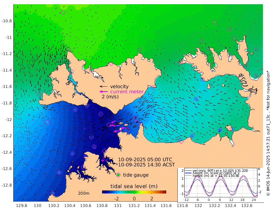 218cm/s -101T +4cm/s rms + 6cm/s 51T. Darwin_C1 52m 176cm/s -91T +4cm/s rms + 7cm/s -161T. Darwin_CW1 22m 118cm/s -106T +4cm/s rms + 8cm/s 61T. Darwin_CW2 34m 114cm/s -136T +3cm/s rms + 9cm/s 98T. Darwin_CW3 22m 193cm/s -91T +5cm/s rms + 7cm/s 88T. Darwin_C3 56m 119cm/s -115T +2cm/s rms + 9cm/s -126T. Darwin_CTbW 22m 18cm/s -120T +1cm/s rms + 1cm/s -47T. DARBGF 30m 13cm/s -136T +4cm/s rms + 3cm/s 80T. NRSDAR 19m 27cm Goodrich Bank -219cm Point Jenny -218cm Native Point -237cm Fish Reef -260cm Tapa Bay -84cm Point Fawcett (Offshore) -287cm Burge Point -239cm Munkunuwa -186cm Beagle A -287cm Parsons Bank -277cm Fenton Patches -290cm Hancox Shoal Area -300cm Nightcliff -321cm Darwin -278cm Charles Point Patches -246cm Glyde Point -211cm Chambers Bay -207cm Point Stuart -217cm Cape Hotham -195cm Christine Reef -224cm West Alligator Head -214cm East Field Island -179cm Two Hills Bay -179cm Camp Point -252cm Medina Inlet South -70cm South Barlow Point -27cm St. Asaph Bay 23cm Cape Van Dieman 11cm Snake Bay 16cm Cache Point -17cm Point Jahleel (Off) -87cm Cape Don -28cm Port Essington -30cm Smith Point - West -28cm NW Peacock Island 2cm North Of Jones Shoal -2cm Peacock Island -65cm Point David -37cm D'urville Point -70cm Copeland Island -57cm One Tree Point