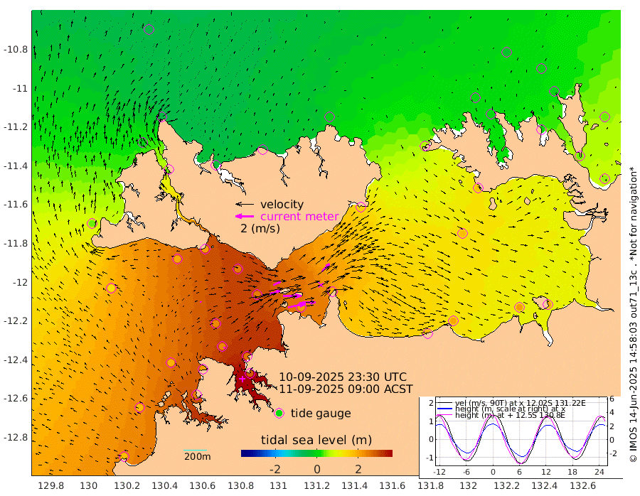 193cm/s 78T +4cm/s rms + 6cm/s 51T. Darwin_C1 52m 145cm/s 92T +4cm/s rms + 7cm/s -161T. Darwin_CW1 22m 120cm/s 72T +4cm/s rms + 8cm/s 61T. Darwin_CW2 34m 120cm/s 44T +3cm/s rms + 9cm/s 98T. Darwin_CW3 22m 198cm/s 89T +5cm/s rms + 7cm/s 88T. Darwin_C3 56m 92cm/s 65T +2cm/s rms + 9cm/s -126T. Darwin_CTbW 22m 10cm/s 6T +1cm/s rms + 1cm/s -47T. DARBGF 30m 17cm/s -11T +4cm/s rms + 3cm/s 80T. NRSDAR 19m -52cm Goodrich Bank 171cm Point Jenny 171cm Native Point 190cm Fish Reef 210cm Tapa Bay 42cm Point Fawcett (Offshore) 241cm Burge Point 202cm Munkunuwa 135cm Beagle A 247cm Parsons Bank 225cm Fenton Patches 243cm Hancox Shoal Area 250cm Nightcliff 275cm Darwin 227cm Charles Point Patches 213cm Glyde Point 188cm Chambers Bay 192cm Point Stuart 188cm Cape Hotham 171cm Christine Reef 209cm West Alligator Head 201cm East Field Island 159cm Two Hills Bay 156cm Camp Point 209cm Medina Inlet South 36cm South Barlow Point -9cm St. Asaph Bay -49cm Cape Van Dieman -34cm Snake Bay -45cm Cache Point -11cm Point Jahleel (Off) 63cm Cape Don 3cm Port Essington 1cm Smith Point - West 1cm NW Peacock Island -29cm North Of Jones Shoal -7cm Peacock Island 43cm Point David 9cm D'urville Point 48cm Copeland Island 35cm One Tree Point