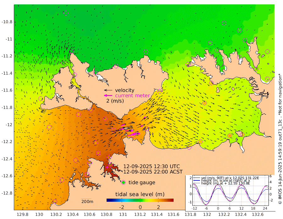 211cm/s 78T +4cm/s rms + 6cm/s 51T. Darwin_C1 52m 155cm/s 93T +4cm/s rms + 7cm/s -161T. Darwin_CW1 22m 123cm/s 72T +4cm/s rms + 8cm/s 61T. Darwin_CW2 34m 114cm/s 46T +3cm/s rms + 9cm/s 98T. Darwin_CW3 22m 198cm/s 89T +5cm/s rms + 7cm/s 88T. Darwin_C3 56m 107cm/s 66T +2cm/s rms + 9cm/s -126T. Darwin_CTbW 22m 18cm/s 59T +1cm/s rms + 1cm/s -47T. DARBGF 30m 11cm/s 35T +4cm/s rms + 3cm/s 80T. NRSDAR 19m -21cm Goodrich Bank 194cm Point Jenny 190cm Native Point 204cm Fish Reef 224cm Tapa Bay 83cm Point Fawcett (Offshore) 242cm Burge Point 211cm Munkunuwa 151cm Beagle A 247cm Parsons Bank 224cm Fenton Patches 248cm Hancox Shoal Area 252cm Nightcliff 269cm Darwin 236cm Charles Point Patches 204cm Glyde Point 182cm Chambers Bay 179cm Point Stuart 181cm Cape Hotham 174cm Christine Reef 194cm West Alligator Head 179cm East Field Island 157cm Two Hills Bay 146cm Camp Point 218cm Medina Inlet South 62cm South Barlow Point 28cm St. Asaph Bay -18cm Cape Van Dieman -12cm Snake Bay -9cm Cache Point 17cm Point Jahleel (Off) 82cm Cape Don 28cm Port Essington 31cm Smith Point - West 26cm NW Peacock Island 5cm North Of Jones Shoal 4cm Peacock Island 52cm Point David 34cm D'urville Point 56cm Copeland Island 49cm One Tree Point