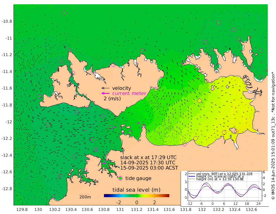 43cm/s -103T +4cm/s rms + 6cm/s 51T. Darwin_C1 52m 4cm/s -88T +4cm/s rms + 7cm/s -161T. Darwin_CW1 22m 44cm/s -110T +4cm/s rms + 8cm/s 61T. Darwin_CW2 34m 9cm/s -52T +3cm/s rms + 9cm/s 98T. Darwin_CW3 22m 40cm/s -94T +5cm/s rms + 7cm/s 88T. Darwin_C3 56m 24cm/s -119T +2cm/s rms + 9cm/s -126T. Darwin_CTbW 22m 35cm/s -89T +1cm/s rms + 1cm/s -47T. DARBGF 30m 32cm/s -63T +4cm/s rms + 3cm/s 80T. NRSDAR 19m -7cm Goodrich Bank -23cm Point Jenny -26cm Native Point -36cm Fish Reef -34cm Tapa Bay -22cm Point Fawcett (Offshore) -30cm Burge Point -60cm Munkunuwa -18cm Beagle A -52cm Parsons Bank -24cm Fenton Patches -29cm Hancox Shoal Area -25cm Nightcliff -41cm Darwin -38cm Charles Point Patches 13cm Glyde Point 76cm Chambers Bay 80cm Point Stuart 29cm Cape Hotham 77cm Christine Reef 93cm West Alligator Head 125cm East Field Island 47cm Two Hills Bay 54cm Camp Point -45cm Medina Inlet South -38cm South Barlow Point -19cm St. Asaph Bay -13cm Cape Van Dieman -21cm Snake Bay -3cm Cache Point -4cm Point Jahleel (Off) 2cm Cape Don -16cm Port Essington -16cm Smith Point - West -15cm NW Peacock Island -8cm North Of Jones Shoal -4cm Peacock Island -23cm Point David -22cm D'urville Point -22cm Copeland Island -19cm One Tree Point