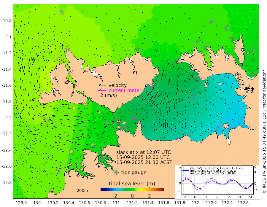 69cm/s 78T +4cm/s rms + 6cm/s 51T. Darwin_C1 52m 28cm/s 92T +4cm/s rms + 7cm/s -161T. Darwin_CW1 22m 50cm/s 73T +4cm/s rms + 8cm/s 61T. Darwin_CW2 34m 12cm/s 125T +3cm/s rms + 9cm/s 98T. Darwin_CW3 22m 54cm/s 86T +5cm/s rms + 7cm/s 88T. Darwin_C3 56m 43cm/s 64T +2cm/s rms + 9cm/s -126T. Darwin_CTbW 22m 50cm/s 91T +1cm/s rms + 1cm/s -47T. DARBGF 30m 50cm/s 118T +4cm/s rms + 3cm/s 80T. NRSDAR 19m 31cm Goodrich Bank 45cm Point Jenny 47cm Native Point 50cm Fish Reef 48cm Tapa Bay 57cm Point Fawcett (Offshore) 37cm Burge Point 79cm Munkunuwa 40cm Beagle A 50cm Parsons Bank 31cm Fenton Patches 29cm Hancox Shoal Area 36cm Nightcliff 38cm Darwin 42cm Charles Point Patches -24cm Glyde Point -91cm Chambers Bay -102cm Point Stuart -44cm Cape Hotham -83cm Christine Reef -114cm West Alligator Head -152cm East Field Island -60cm Two Hills Bay -70cm Camp Point 59cm Medina Inlet South 62cm South Barlow Point 53cm St. Asaph Bay 36cm Cape Van Dieman 39cm Snake Bay 26cm Cache Point 20cm Point Jahleel (Off) -1cm Cape Don 17cm Port Essington 21cm Smith Point - West 13cm NW Peacock Island 20cm North Of Jones Shoal 6cm Peacock Island -6cm Point David 16cm D'urville Point -9cm Copeland Island -2cm One Tree Point