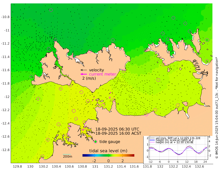 50cm/s 78T +4cm/s rms + 6cm/s 51T. Darwin_C1 52m 32cm/s 90T +4cm/s rms + 7cm/s -161T. Darwin_CW1 22m 21cm/s 72T +4cm/s rms + 8cm/s 61T. Darwin_CW2 34m 36cm/s 37T +3cm/s rms + 9cm/s 98T. Darwin_CW3 22m 24cm/s 90T +5cm/s rms + 7cm/s 88T. Darwin_C3 56m 25cm/s 64T +2cm/s rms + 9cm/s -126T. Darwin_CTbW 22m 6cm/s 81T +1cm/s rms + 1cm/s -47T. DARBGF 30m 6cm/s 113T +4cm/s rms + 3cm/s 80T. NRSDAR 19m -34cm Goodrich Bank 62cm Point Jenny 58cm Native Point 71cm Fish Reef 69cm Tapa Bay 11cm Point Fawcett (Offshore) 82cm Burge Point 56cm Munkunuwa 51cm Beagle A 80cm Parsons Bank 81cm Fenton Patches 81cm Hancox Shoal Area 80cm Nightcliff 86cm Darwin 72cm Charles Point Patches 77cm Glyde Point 78cm Chambers Bay 83cm Point Stuart 75cm Cape Hotham 65cm Christine Reef 87cm West Alligator Head 87cm East Field Island 64cm Two Hills Bay 60cm Camp Point 62cm Medina Inlet South -2cm South Barlow Point -16cm St. Asaph Bay -29cm Cape Van Dieman -30cm Snake Bay -22cm Cache Point -11cm Point Jahleel (Off) 25cm Cape Don 4cm Port Essington 3cm Smith Point - West 5cm NW Peacock Island -13cm North Of Jones Shoal -1cm Peacock Island 33cm Point David 11cm D'urville Point 38cm Copeland Island 26cm One Tree Point