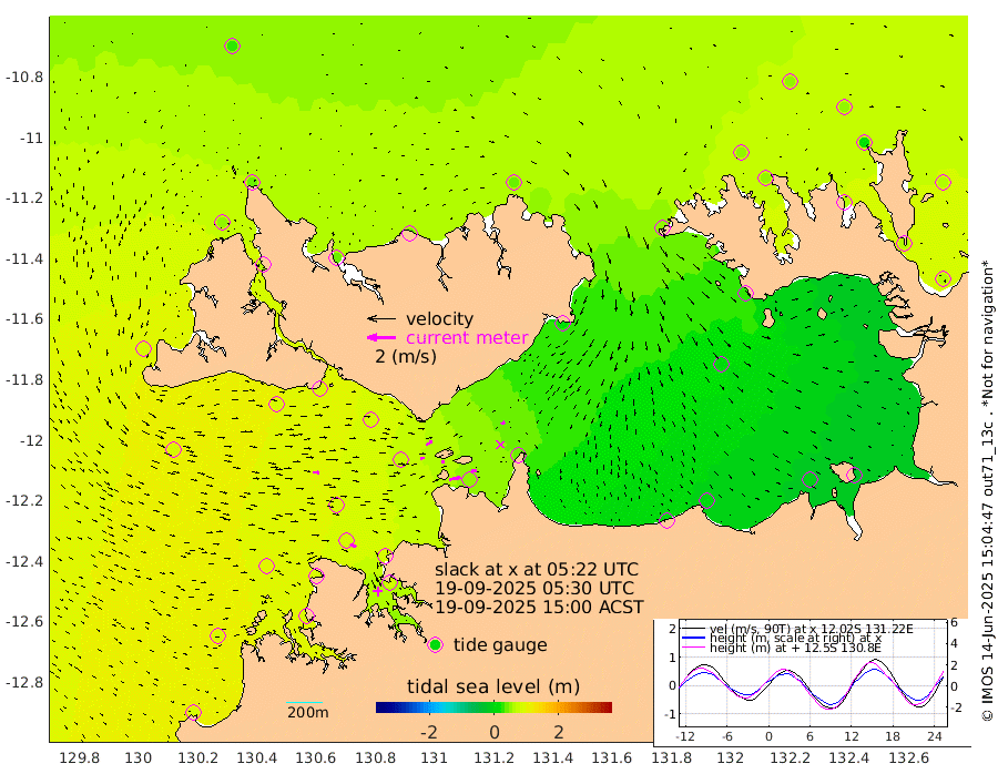 79cm/s 78T +4cm/s rms + 6cm/s 51T. Darwin_C1 52m 39cm/s 83T +4cm/s rms + 7cm/s -161T. Darwin_CW1 22m 26cm/s 77T +4cm/s rms + 8cm/s 61T. Darwin_CW2 34m 26cm/s 53T +3cm/s rms + 9cm/s 98T. Darwin_CW3 22m 22cm/s 87T +5cm/s rms + 7cm/s 88T. Darwin_C3 56m 49cm/s 63T +2cm/s rms + 9cm/s -126T. Darwin_CTbW 22m 42cm/s 93T +1cm/s rms + 1cm/s -47T. DARBGF 30m 42cm/s 121T +4cm/s rms + 3cm/s 80T. NRSDAR 19m 33cm Goodrich Bank 88cm Point Jenny 85cm Native Point 93cm Fish Reef 87cm Tapa Bay 79cm Point Fawcett (Offshore) 82cm Burge Point 81cm Munkunuwa 80cm Beagle A 85cm Parsons Bank 79cm Fenton Patches 76cm Hancox Shoal Area 81cm Nightcliff 81cm Darwin 86cm Charles Point Patches 45cm Glyde Point 9cm Chambers Bay 2cm Point Stuart 36cm Cape Hotham 2cm Christine Reef -7cm West Alligator Head -30cm East Field Island 23cm Two Hills Bay 13cm Camp Point 85cm Medina Inlet South 65cm South Barlow Point 55cm St. Asaph Bay 40cm Cape Van Dieman 42cm Snake Bay 43cm Cache Point 41cm Point Jahleel (Off) 50cm Cape Don 54cm Port Essington 55cm Smith Point - West 53cm NW Peacock Island 49cm North Of Jones Shoal 19cm Peacock Island 64cm Point David 59cm D'urville Point 64cm Copeland Island 63cm One Tree Point