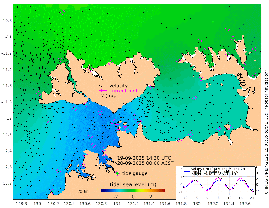 100cm/s -101T +4cm/s rms + 6cm/s 51T. Darwin_C1 52m 94cm/s -92T +4cm/s rms + 7cm/s -161T. Darwin_CW1 22m 62cm/s -106T +4cm/s rms + 8cm/s 61T. Darwin_CW2 34m 68cm/s -138T +3cm/s rms + 9cm/s 98T. Darwin_CW3 22m 106cm/s -90T +5cm/s rms + 7cm/s 88T. Darwin_C3 56m 48cm/s -116T +2cm/s rms + 9cm/s -126T. Darwin_CTbW 22m 7cm/s -161T +1cm/s rms + 1cm/s -47T. DARBGF 30m 7cm/s 175T +4cm/s rms + 3cm/s 80T. NRSDAR 19m 19cm Goodrich Bank -145cm Point Jenny -142cm Native Point -158cm Fish Reef -170cm Tapa Bay -60cm Point Fawcett (Offshore) -192cm Burge Point -152cm Munkunuwa -116cm Beagle A -182cm Parsons Bank -174cm Fenton Patches -183cm Hancox Shoal Area -186cm Nightcliff -209cm Darwin -186cm Charles Point Patches -167cm Glyde Point -156cm Chambers Bay -156cm Point Stuart -151cm Cape Hotham -135cm Christine Reef -166cm West Alligator Head -165cm East Field Island -127cm Two Hills Bay -134cm Camp Point -164cm Medina Inlet South -39cm South Barlow Point -15cm St. Asaph Bay 15cm Cape Van Dieman 11cm Snake Bay 9cm Cache Point -9cm Point Jahleel (Off) -62cm Cape Don -21cm Port Essington -13cm Smith Point - West -14cm NW Peacock Island 1cm North Of Jones Shoal -2cm Peacock Island -46cm Point David -18cm D'urville Point -48cm Copeland Island -42cm One Tree Point