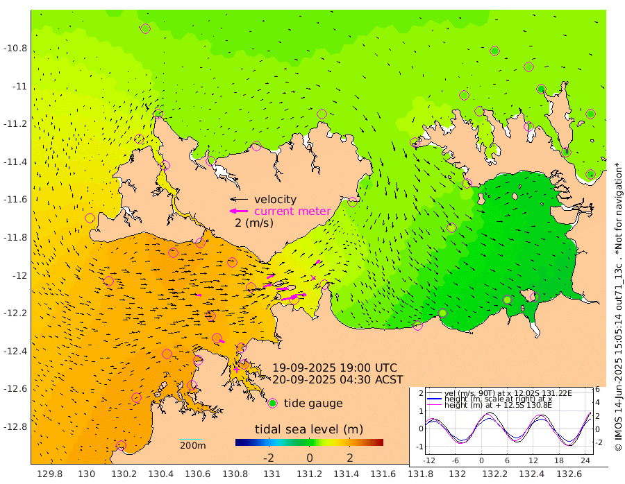 174cm/s 78T +4cm/s rms + 6cm/s 51T. Darwin_C1 52m 127cm/s 92T +4cm/s rms + 7cm/s -161T. Darwin_CW1 22m 95cm/s 73T +4cm/s rms + 8cm/s 61T. Darwin_CW2 34m 82cm/s 48T +3cm/s rms + 9cm/s 98T. Darwin_CW3 22m 129cm/s 89T +5cm/s rms + 7cm/s 88T. Darwin_C3 56m 95cm/s 65T +2cm/s rms + 9cm/s -126T. Darwin_CTbW 22m 61cm/s 88T +1cm/s rms + 1cm/s -47T. DARBGF 30m 60cm/s 117T +4cm/s rms + 3cm/s 80T. NRSDAR 19m 37cm Goodrich Bank 197cm Point Jenny 197cm Native Point 209cm Fish Reef 209cm Tapa Bay 133cm Point Fawcett (Offshore) 219cm Burge Point 207cm Munkunuwa 187cm Beagle A 201cm Parsons Bank 216cm Fenton Patches 187cm Hancox Shoal Area 209cm Nightcliff 215cm Darwin 205cm Charles Point Patches 136cm Glyde Point 66cm Chambers Bay 53cm Point Stuart 100cm Cape Hotham 60cm Christine Reef 52cm West Alligator Head 24cm East Field Island 66cm Two Hills Bay 66cm Camp Point 206cm Medina Inlet South 112cm South Barlow Point 89cm St. Asaph Bay 44cm Cape Van Dieman 46cm Snake Bay 44cm Cache Point 48cm Point Jahleel (Off) 66cm Cape Don 44cm Port Essington 46cm Smith Point - West 35cm NW Peacock Island 29cm North Of Jones Shoal 10cm Peacock Island 28cm Point David 41cm D'urville Point 26cm Copeland Island 30cm One Tree Point