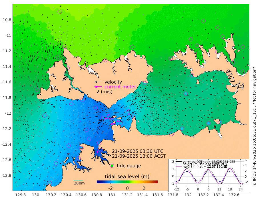 141cm/s -101T +4cm/s rms + 6cm/s 51T. Darwin_C1 52m 120cm/s -91T +4cm/s rms + 7cm/s -161T. Darwin_CW1 22m 80cm/s -106T +4cm/s rms + 8cm/s 61T. Darwin_CW2 34m 82cm/s -136T +3cm/s rms + 9cm/s 98T. Darwin_CW3 22m 129cm/s -91T +5cm/s rms + 7cm/s 88T. Darwin_C3 56m 70cm/s -116T +2cm/s rms + 9cm/s -126T. Darwin_CTbW 22m 10cm/s -135T +1cm/s rms + 1cm/s -47T. DARBGF 30m 8cm/s -148T +4cm/s rms + 3cm/s 80T. NRSDAR 19m 36cm Goodrich Bank -155cm Point Jenny -153cm Native Point -180cm Fish Reef -181cm Tapa Bay -53cm Point Fawcett (Offshore) -213cm Burge Point -173cm Munkunuwa -137cm Beagle A -204cm Parsons Bank -206cm Fenton Patches -200cm Hancox Shoal Area -209cm Nightcliff -232cm Darwin -199cm Charles Point Patches -178cm Glyde Point -153cm Chambers Bay -157cm Point Stuart -158cm Cape Hotham -139cm Christine Reef -171cm West Alligator Head -168cm East Field Island -129cm Two Hills Bay -127cm Camp Point -183cm Medina Inlet South -39cm South Barlow Point -7cm St. Asaph Bay 34cm Cape Van Dieman 29cm Snake Bay 27cm Cache Point 3cm Point Jahleel (Off) -52cm Cape Don -5cm Port Essington -4cm Smith Point - West 0cm NW Peacock Island 20cm North Of Jones Shoal 5cm Peacock Island -19cm Point David -6cm D'urville Point -24cm Copeland Island -18cm One Tree Point