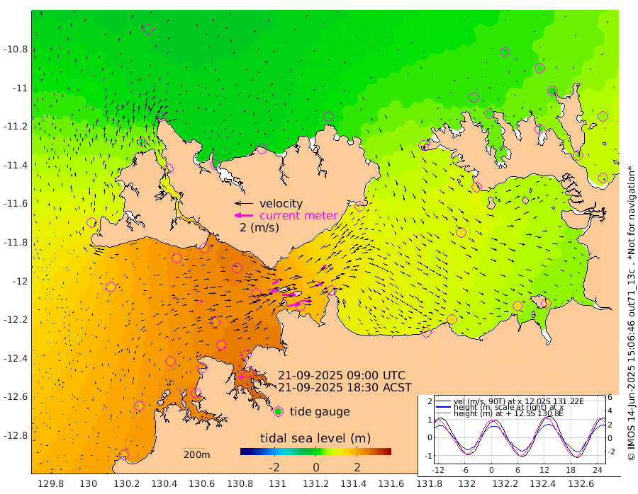 147cm/s 79T +4cm/s rms + 6cm/s 51T. Darwin_C1 52m 113cm/s 93T +4cm/s rms + 7cm/s -161T. Darwin_CW1 22m 100cm/s 72T +4cm/s rms + 8cm/s 61T. Darwin_CW2 34m 82cm/s 44T +3cm/s rms + 9cm/s 98T. Darwin_CW3 22m 150cm/s 89T +5cm/s rms + 7cm/s 88T. Darwin_C3 56m 69cm/s 65T +2cm/s rms + 9cm/s -126T. Darwin_CTbW 22m 30cm/s 78T +1cm/s rms + 1cm/s -47T. DARBGF 30m 19cm/s 104T +4cm/s rms + 3cm/s 80T. NRSDAR 19m -19cm Goodrich Bank 179cm Point Jenny 175cm Native Point 201cm Fish Reef 207cm Tapa Bay 87cm Point Fawcett (Offshore) 227cm Burge Point 199cm Munkunuwa 149cm Beagle A 226cm Parsons Bank 211cm Fenton Patches 221cm Hancox Shoal Area 228cm Nightcliff 250cm Darwin 224cm Charles Point Patches 177cm Glyde Point 139cm Chambers Bay 135cm Point Stuart 157cm Cape Hotham 118cm Christine Reef 142cm West Alligator Head 125cm East Field Island 122cm Two Hills Bay 118cm Camp Point 206cm Medina Inlet South 65cm South Barlow Point 33cm St. Asaph Bay -12cm Cape Van Dieman -6cm Snake Bay -6cm Cache Point 15cm Point Jahleel (Off) 69cm Cape Don 30cm Port Essington 28cm Smith Point - West 24cm NW Peacock Island 9cm North Of Jones Shoal 6cm Peacock Island 55cm Point David 33cm D'urville Point 60cm Copeland Island 53cm One Tree Point