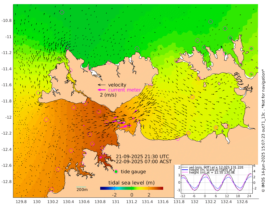 184cm/s 78T +4cm/s rms + 6cm/s 51T. Darwin_C1 52m 145cm/s 93T +4cm/s rms + 7cm/s -161T. Darwin_CW1 22m 120cm/s 72T +4cm/s rms + 8cm/s 61T. Darwin_CW2 34m 105cm/s 46T +3cm/s rms + 9cm/s 98T. Darwin_CW3 22m 186cm/s 89T +5cm/s rms + 7cm/s 88T. Darwin_C3 56m 90cm/s 65T +2cm/s rms + 9cm/s -126T. Darwin_CTbW 22m 25cm/s 70T +1cm/s rms + 1cm/s -47T. DARBGF 30m 14cm/s 83T +4cm/s rms + 3cm/s 80T. NRSDAR 19m -16cm Goodrich Bank 197cm Point Jenny 196cm Native Point 221cm Fish Reef 228cm Tapa Bay 88cm Point Fawcett (Offshore) 255cm Burge Point 222cm Munkunuwa 170cm Beagle A 247cm Parsons Bank 242cm Fenton Patches 238cm Hancox Shoal Area 248cm Nightcliff 280cm Darwin 248cm Charles Point Patches 203cm Glyde Point 157cm Chambers Bay 155cm Point Stuart 169cm Cape Hotham 138cm Christine Reef 166cm West Alligator Head 152cm East Field Island 135cm Two Hills Bay 136cm Camp Point 231cm Medina Inlet South 73cm South Barlow Point 35cm St. Asaph Bay -12cm Cape Van Dieman -3cm Snake Bay -8cm Cache Point 14cm Point Jahleel (Off) 71cm Cape Don 23cm Port Essington 20cm Smith Point - West 14cm NW Peacock Island -6cm North Of Jones Shoal 0cm Peacock Island 34cm Point David 21cm D'urville Point 36cm Copeland Island 33cm One Tree Point