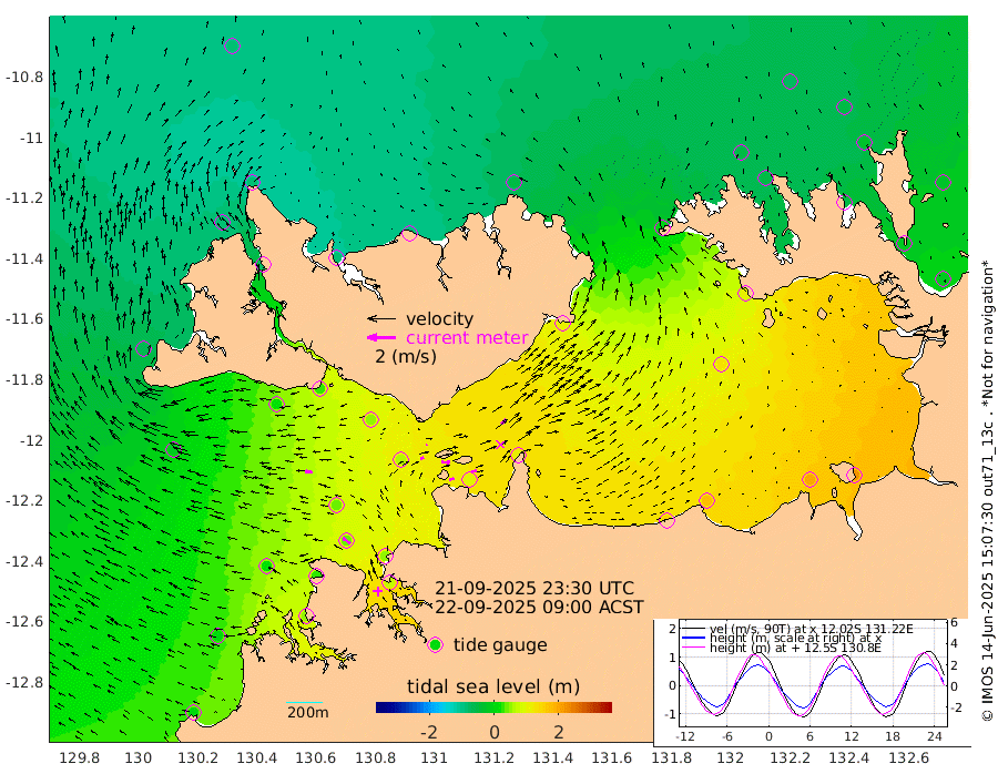 32cm/s 79T +4cm/s rms + 6cm/s 51T. Darwin_C1 52m 41cm/s 89T +4cm/s rms + 7cm/s -161T. Darwin_CW1 22m 23cm/s 72T +4cm/s rms + 8cm/s 61T. Darwin_CW2 34m 45cm/s 41T +3cm/s rms + 9cm/s 98T. Darwin_CW3 22m 62cm/s 92T +5cm/s rms + 7cm/s 88T. Darwin_C3 56m 7cm/s 70T +2cm/s rms + 9cm/s -126T. Darwin_CTbW 22m 56cm/s -82T +1cm/s rms + 1cm/s -47T. DARBGF 30m 66cm/s -51T +4cm/s rms + 3cm/s 80T. NRSDAR 19m -80cm Goodrich Bank 3cm Point Jenny 2cm Native Point 16cm Fish Reef 25cm Tapa Bay -65cm Point Fawcett (Offshore) 50cm Burge Point 17cm Munkunuwa -20cm Beagle A 54cm Parsons Bank 38cm Fenton Patches 63cm Hancox Shoal Area 47cm Nightcliff 78cm Darwin 45cm Charles Point Patches 101cm Glyde Point 149cm Chambers Bay 172cm Point Stuart 106cm Cape Hotham 133cm Christine Reef 196cm West Alligator Head 224cm East Field Island 112cm Two Hills Bay 111cm Camp Point 27cm Medina Inlet South -69cm South Barlow Point -83cm St. Asaph Bay -86cm Cape Van Dieman -82cm Snake Bay -79cm Cache Point -54cm Point Jahleel (Off) 0cm Cape Don -47cm Port Essington -55cm Smith Point - West -50cm NW Peacock Island -69cm North Of Jones Shoal -23cm Peacock Island -20cm Point David -51cm D'urville Point -16cm Copeland Island -24cm One Tree Point