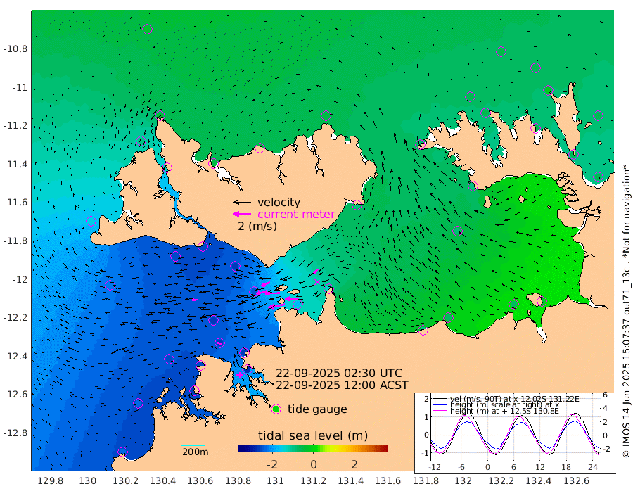188cm/s -102T +4cm/s rms + 6cm/s 51T. Darwin_C1 52m 150cm/s -90T +4cm/s rms + 7cm/s -161T. Darwin_CW1 22m 117cm/s -107T +4cm/s rms + 8cm/s 61T. Darwin_CW2 34m 76cm/s -133T +3cm/s rms + 9cm/s 98T. Darwin_CW3 22m 161cm/s -91T +5cm/s rms + 7cm/s 88T. Darwin_C3 56m 107cm/s -115T +2cm/s rms + 9cm/s -126T. Darwin_CTbW 22m 69cm/s -92T +1cm/s rms + 1cm/s -47T. DARBGF 30m 60cm/s -64T +4cm/s rms + 3cm/s 80T. NRSDAR 19m -33cm Goodrich Bank -230cm Point Jenny -228cm Native Point -253cm Fish Reef -251cm Tapa Bay -150cm Point Fawcett (Offshore) -268cm Burge Point -248cm Munkunuwa -215cm Beagle A -259cm Parsons Bank -262cm Fenton Patches -244cm Hancox Shoal Area -267cm Nightcliff -279cm Darwin -264cm Charles Point Patches -175cm Glyde Point -92cm Chambers Bay -76cm Point Stuart -137cm Cape Hotham -82cm Christine Reef -73cm West Alligator Head -39cm East Field Island -93cm Two Hills Bay -90cm Camp Point -254cm Medina Inlet South -132cm South Barlow Point -97cm St. Asaph Bay -42cm Cape Van Dieman -49cm Snake Bay -44cm Cache Point -55cm Point Jahleel (Off) -89cm Cape Don -64cm Port Essington -67cm Smith Point - West -58cm NW Peacock Island -48cm North Of Jones Shoal -19cm Peacock Island -64cm Point David -67cm D'urville Point -65cm Copeland Island -66cm One Tree Point