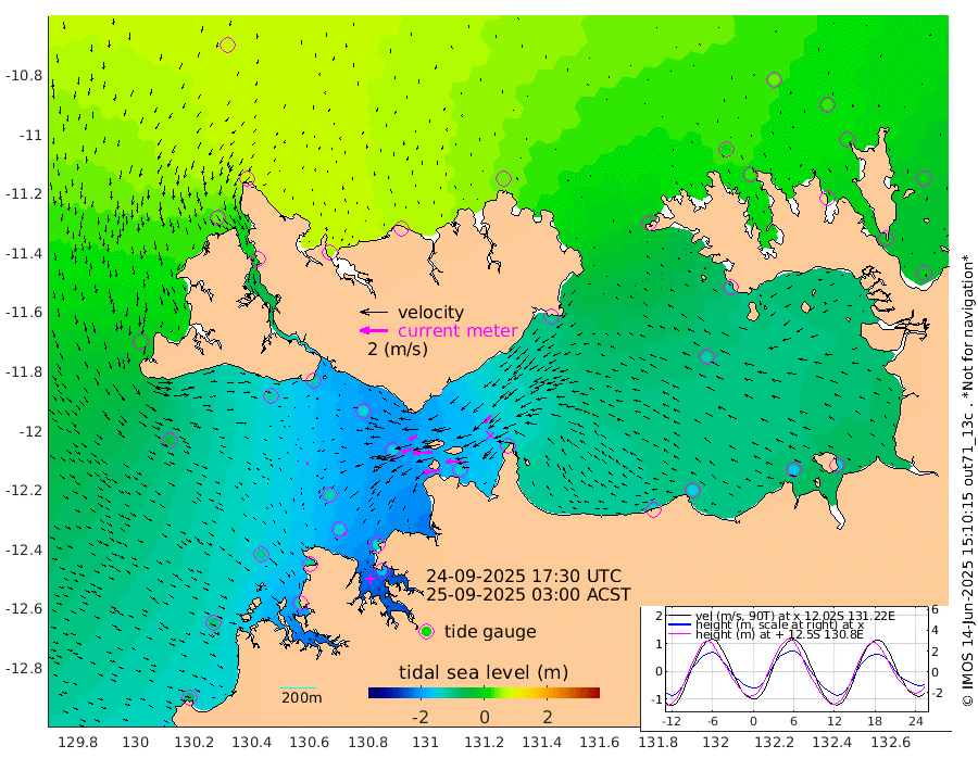 125cm/s -100T +4cm/s rms + 6cm/s 51T. Darwin_C1 52m 109cm/s -91T +4cm/s rms + 7cm/s -161T. Darwin_CW1 22m 73cm/s -106T +4cm/s rms + 8cm/s 61T. Darwin_CW2 34m 73cm/s -135T +3cm/s rms + 9cm/s 98T. Darwin_CW3 22m 140cm/s -91T +5cm/s rms + 7cm/s 88T. Darwin_C3 56m 59cm/s -116T +2cm/s rms + 9cm/s -126T. Darwin_CTbW 22m 14cm/s 126T +1cm/s rms + 1cm/s -47T. DARBGF 30m 22cm/s 151T +4cm/s rms + 3cm/s 80T. NRSDAR 19m 70cm Goodrich Bank -84cm Point Jenny -82cm Native Point -104cm Fish Reef -117cm Tapa Bay 2cm Point Fawcett (Offshore) -128cm Burge Point -113cm Munkunuwa -46cm Beagle A -146cm Parsons Bank -114cm Fenton Patches -148cm Hancox Shoal Area -140cm Nightcliff -170cm Darwin -136cm Charles Point Patches -137cm Glyde Point -142cm Chambers Bay -149cm Point Stuart -126cm Cape Hotham -117cm Christine Reef -166cm West Alligator Head -165cm East Field Island -114cm Two Hills Bay -104cm Camp Point -119cm Medina Inlet South 14cm South Barlow Point 42cm St. Asaph Bay 69cm Cape Van Dieman 61cm Snake Bay 64cm Cache Point 36cm Point Jahleel (Off) -26cm Cape Don 20cm Port Essington 24cm Smith Point - West 25cm NW Peacock Island 44cm North Of Jones Shoal 13cm Peacock Island -11cm Point David 18cm D'urville Point -17cm Copeland Island -7cm One Tree Point