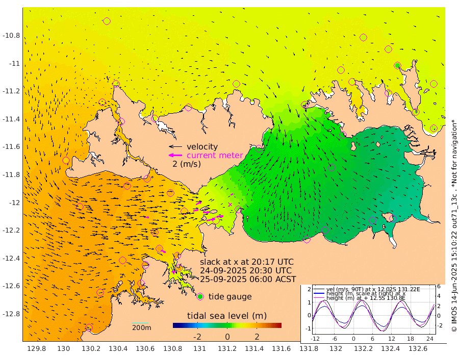 130cm/s 78T +4cm/s rms + 6cm/s 51T. Darwin_C1 52m 103cm/s 85T +4cm/s rms + 7cm/s -161T. Darwin_CW1 22m 78cm/s 75T +4cm/s rms + 8cm/s 61T. Darwin_CW2 34m 38cm/s 57T +3cm/s rms + 9cm/s 98T. Darwin_CW3 22m 93cm/s 87T +5cm/s rms + 7cm/s 88T. Darwin_C3 56m 87cm/s 63T +2cm/s rms + 9cm/s -126T. Darwin_CTbW 22m 76cm/s 90T +1cm/s rms + 1cm/s -47T. DARBGF 30m 75cm/s 119T +4cm/s rms + 3cm/s 80T. NRSDAR 19m 83cm Goodrich Bank 184cm Point Jenny 187cm Native Point 189cm Fish Reef 193cm Tapa Bay 151cm Point Fawcett (Offshore) 198cm Burge Point 196cm Munkunuwa 185cm Beagle A 187cm Parsons Bank 196cm Fenton Patches 166cm Hancox Shoal Area 194cm Nightcliff 194cm Darwin 198cm Charles Point Patches 89cm Glyde Point -18cm Chambers Bay -49cm Point Stuart 44cm Cape Hotham -12cm Christine Reef -68cm West Alligator Head -111cm East Field Island 2cm Two Hills Bay 15cm Camp Point 197cm Medina Inlet South 154cm South Barlow Point 128cm St. Asaph Bay 92cm Cape Van Dieman 100cm Snake Bay 84cm Cache Point 78cm Point Jahleel (Off) 73cm Cape Don 82cm Port Essington 84cm Smith Point - West 77cm NW Peacock Island 77cm North Of Jones Shoal 28cm Peacock Island 67cm Point David 84cm D'urville Point 63cm Copeland Island 69cm One Tree Point