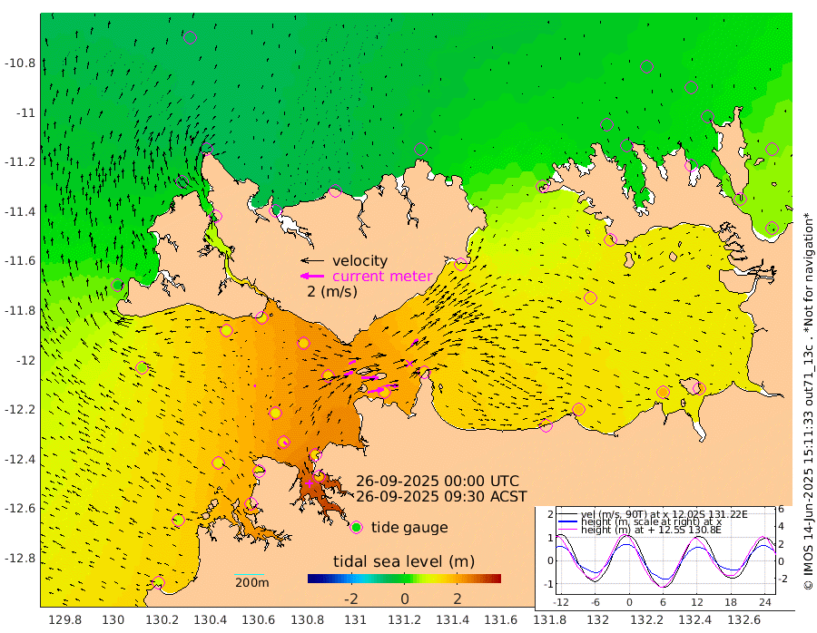 136cm/s 79T +4cm/s rms + 6cm/s 51T. Darwin_C1 52m 109cm/s 92T +4cm/s rms + 7cm/s -161T. Darwin_CW1 22m 80cm/s 71T +4cm/s rms + 8cm/s 61T. Darwin_CW2 34m 91cm/s 44T +3cm/s rms + 9cm/s 98T. Darwin_CW3 22m 145cm/s 90T +5cm/s rms + 7cm/s 88T. Darwin_C3 56m 63cm/s 66T +2cm/s rms + 9cm/s -126T. Darwin_CTbW 22m 20cm/s -65T +1cm/s rms + 1cm/s -47T. DARBGF 30m 34cm/s -42T +4cm/s rms + 3cm/s 80T. NRSDAR 19m -61cm Goodrich Bank 80cm Point Jenny 77cm Native Point 103cm Fish Reef 108cm Tapa Bay -2cm Point Fawcett (Offshore) 131cm Burge Point 100cm Munkunuwa 50cm Beagle A 147cm Parsons Bank 118cm Fenton Patches 148cm Hancox Shoal Area 145cm Nightcliff 174cm Darwin 137cm Charles Point Patches 150cm Glyde Point 158cm Chambers Bay 170cm Point Stuart 142cm Cape Hotham 137cm Christine Reef 187cm West Alligator Head 192cm East Field Island 134cm Two Hills Bay 123cm Camp Point 117cm Medina Inlet South -6cm South Barlow Point -39cm St. Asaph Bay -61cm Cape Van Dieman -46cm Snake Bay -52cm Cache Point -23cm Point Jahleel (Off) 44cm Cape Don -2cm Port Essington -7cm Smith Point - West -4cm NW Peacock Island -23cm North Of Jones Shoal -5cm Peacock Island 35cm Point David 2cm D'urville Point 41cm Copeland Island 35cm One Tree Point