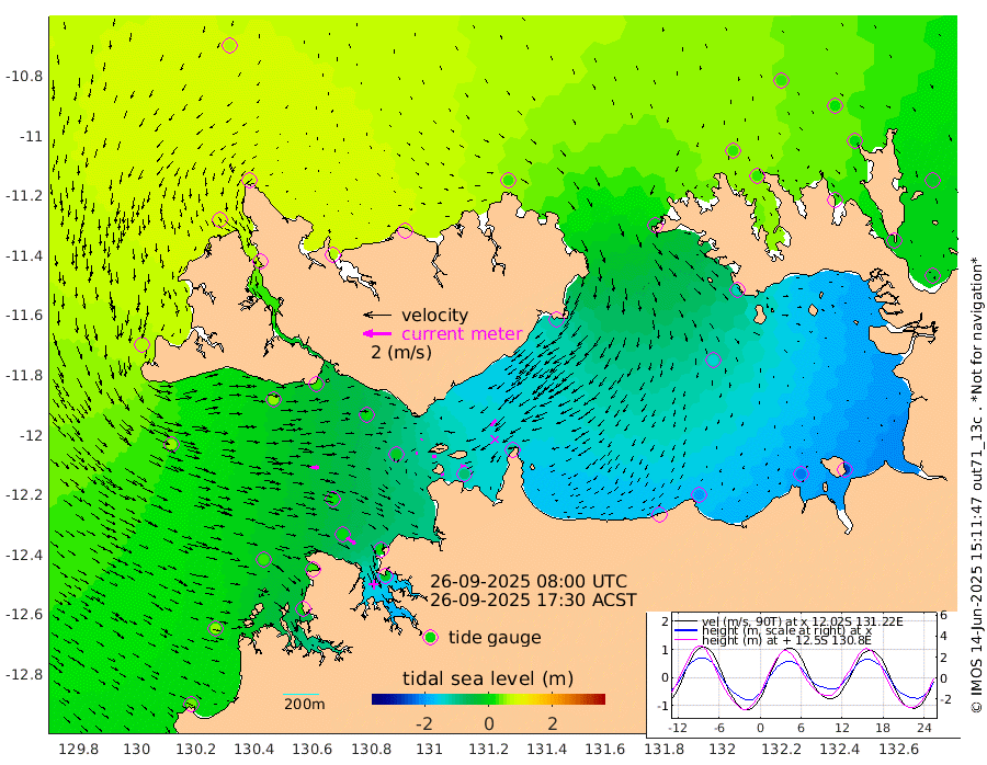 25cm/s -100T +4cm/s rms + 6cm/s 51T. Darwin_C1 52m 36cm/s -92T +4cm/s rms + 7cm/s -161T. Darwin_CW1 22m 14cm/s 67T +4cm/s rms + 8cm/s 61T. Darwin_CW2 34m 57cm/s -143T +3cm/s rms + 9cm/s 98T. Darwin_CW3 22m 30cm/s -85T +5cm/s rms + 7cm/s 88T. Darwin_C3 56m 4cm/s 46T +2cm/s rms + 9cm/s -126T. Darwin_CTbW 22m 68cm/s 96T +1cm/s rms + 1cm/s -47T. DARBGF 30m 76cm/s 126T +4cm/s rms + 3cm/s 80T. NRSDAR 19m 64cm Goodrich Bank 41cm Point Jenny 45cm Native Point 23cm Fish Reef 30cm Tapa Bay 65cm Point Fawcett (Offshore) 12cm Burge Point 50cm Munkunuwa 51cm Beagle A 4cm Parsons Bank 18cm Fenton Patches -11cm Hancox Shoal Area 1cm Nightcliff -19cm Darwin 9cm Charles Point Patches -80cm Glyde Point -160cm Chambers Bay -194cm Point Stuart -108cm Cape Hotham -141cm Christine Reef -220cm West Alligator Head -259cm East Field Island -133cm Two Hills Bay -114cm Camp Point 24cm Medina Inlet South 77cm South Barlow Point 79cm St. Asaph Bay 71cm Cape Van Dieman 63cm Snake Bay 54cm Cache Point 33cm Point Jahleel (Off) -17cm Cape Don 24cm Port Essington 30cm Smith Point - West 22cm NW Peacock Island 29cm North Of Jones Shoal 9cm Peacock Island -9cm Point David 24cm D'urville Point -13cm Copeland Island -11cm One Tree Point