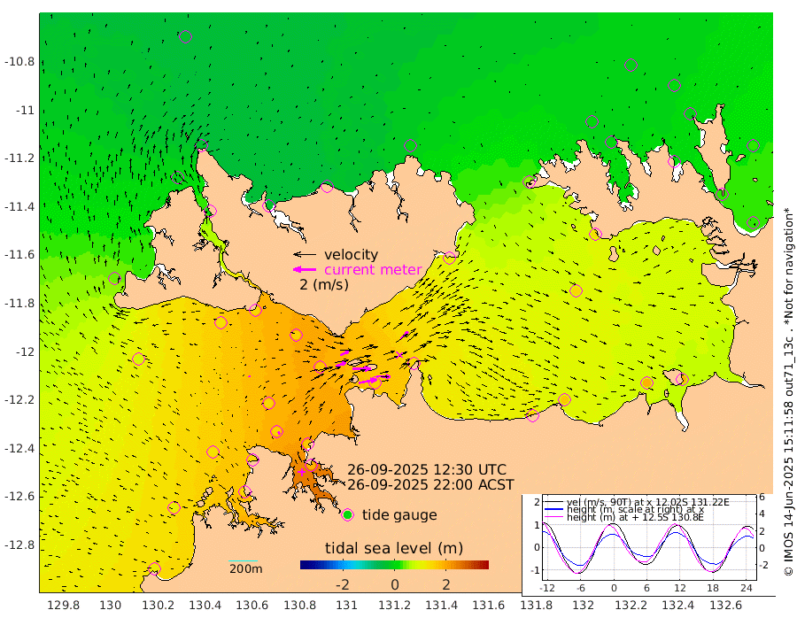 159cm/s 79T +4cm/s rms + 6cm/s 51T. Darwin_C1 52m 127cm/s 93T +4cm/s rms + 7cm/s -161T. Darwin_CW1 22m 93cm/s 71T +4cm/s rms + 8cm/s 61T. Darwin_CW2 34m 89cm/s 47T +3cm/s rms + 9cm/s 98T. Darwin_CW3 22m 159cm/s 89T +5cm/s rms + 7cm/s 88T. Darwin_C3 56m 80cm/s 66T +2cm/s rms + 9cm/s -126T. Darwin_CTbW 22m 9cm/s -24T +1cm/s rms + 1cm/s -47T. DARBGF 30m 24cm/s -37T +4cm/s rms + 3cm/s 80T. NRSDAR 19m -32cm Goodrich Bank 113cm Point Jenny 110cm Native Point 127cm Fish Reef 142cm Tapa Bay 40cm Point Fawcett (Offshore) 144cm Burge Point 126cm Munkunuwa 80cm Beagle A 156cm Parsons Bank 136cm Fenton Patches 166cm Hancox Shoal Area 167cm Nightcliff 183cm Darwin 156cm Charles Point Patches 152cm Glyde Point 159cm Chambers Bay 163cm Point Stuart 144cm Cape Hotham 141cm Christine Reef 182cm West Alligator Head 182cm East Field Island 134cm Two Hills Bay 121cm Camp Point 139cm Medina Inlet South 20cm South Barlow Point 0cm St. Asaph Bay -32cm Cape Van Dieman -24cm Snake Bay -23cm Cache Point 1cm Point Jahleel (Off) 51cm Cape Don 6cm Port Essington 7cm Smith Point - West 3cm NW Peacock Island -7cm North Of Jones Shoal -1cm Peacock Island 25cm Point David 8cm D'urville Point 29cm Copeland Island 25cm One Tree Point