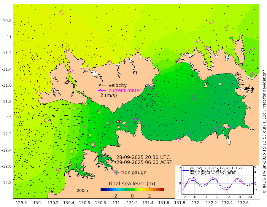 28cm/s -99T +4cm/s rms + 6cm/s 51T. Darwin_C1 52m 15cm/s -95T +4cm/s rms + 7cm/s -161T. Darwin_CW1 22m 3cm/s 79T +4cm/s rms + 8cm/s 61T. Darwin_CW2 34m 25cm/s -137T +3cm/s rms + 9cm/s 98T. Darwin_CW3 22m 8cm/s -87T +5cm/s rms + 7cm/s 88T. Darwin_C3 56m 17cm/s -115T +2cm/s rms + 9cm/s -126T. Darwin_CTbW 22m 32cm/s 95T +1cm/s rms + 1cm/s -47T. DARBGF 30m 33cm/s 129T +4cm/s rms + 3cm/s 80T. NRSDAR 19m 84cm Goodrich Bank 61cm Point Jenny 65cm Native Point 57cm Fish Reef 57cm Tapa Bay 83cm Point Fawcett (Offshore) 58cm Burge Point 60cm Munkunuwa 75cm Beagle A 41cm Parsons Bank 55cm Fenton Patches 29cm Hancox Shoal Area 34cm Nightcliff 40cm Darwin 58cm Charles Point Patches 3cm Glyde Point -55cm Chambers Bay -65cm Point Stuart -14cm Cape Hotham -46cm Christine Reef -81cm West Alligator Head -98cm East Field Island -33cm Two Hills Bay -16cm Camp Point 57cm Medina Inlet South 87cm South Barlow Point 88cm St. Asaph Bay 87cm Cape Van Dieman 87cm Snake Bay 80cm Cache Point 64cm Point Jahleel (Off) 32cm Cape Don 58cm Port Essington 55cm Smith Point - West 54cm NW Peacock Island 59cm North Of Jones Shoal 20cm Peacock Island 39cm Point David 53cm D'urville Point 33cm Copeland Island 38cm One Tree Point