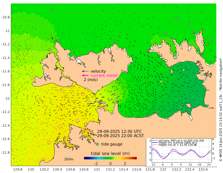 141cm/s 77T +4cm/s rms + 6cm/s 51T. Darwin_C1 52m 77cm/s 92T +4cm/s rms + 7cm/s -161T. Darwin_CW1 22m 72cm/s 73T +4cm/s rms + 8cm/s 61T. Darwin_CW2 34m 61cm/s 51T +3cm/s rms + 9cm/s 98T. Darwin_CW3 22m 97cm/s 89T +5cm/s rms + 7cm/s 88T. Darwin_C3 56m 81cm/s 65T +2cm/s rms + 9cm/s -126T. Darwin_CTbW 22m 32cm/s 84T +1cm/s rms + 1cm/s -47T. DARBGF 30m 29cm/s 107T +4cm/s rms + 3cm/s 80T. NRSDAR 19m 13cm Goodrich Bank 109cm Point Jenny 110cm Native Point 105cm Fish Reef 121cm Tapa Bay 60cm Point Fawcett (Offshore) 120cm Burge Point 123cm Munkunuwa 91cm Beagle A 126cm Parsons Bank 117cm Fenton Patches 122cm Hancox Shoal Area 131cm Nightcliff 128cm Darwin 118cm Charles Point Patches 72cm Glyde Point 32cm Chambers Bay 16cm Point Stuart 48cm Cape Hotham 43cm Christine Reef 17cm West Alligator Head -5cm East Field Island 30cm Two Hills Bay 28cm Camp Point 117cm Medina Inlet South 60cm South Barlow Point 42cm St. Asaph Bay 15cm Cape Van Dieman 18cm Snake Bay 13cm Cache Point 20cm Point Jahleel (Off) 34cm Cape Don 20cm Port Essington 27cm Smith Point - West 21cm NW Peacock Island 13cm North Of Jones Shoal 4cm Peacock Island 14cm Point David 25cm D'urville Point 15cm Copeland Island 15cm One Tree Point