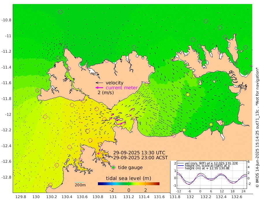 147cm/s 78T +4cm/s rms + 6cm/s 51T. Darwin_C1 52m 85cm/s 94T +4cm/s rms + 7cm/s -161T. Darwin_CW1 22m 68cm/s 72T +4cm/s rms + 8cm/s 61T. Darwin_CW2 34m 73cm/s 48T +3cm/s rms + 9cm/s 98T. Darwin_CW3 22m 98cm/s 89T +5cm/s rms + 7cm/s 88T. Darwin_C3 56m 83cm/s 66T +2cm/s rms + 9cm/s -126T. Darwin_CTbW 22m 16cm/s 75T +1cm/s rms + 1cm/s -47T. DARBGF 30m 12cm/s 84T +4cm/s rms + 3cm/s 80T. NRSDAR 19m -1cm Goodrich Bank 95cm Point Jenny 94cm Native Point 92cm Fish Reef 107cm Tapa Bay 44cm Point Fawcett (Offshore) 105cm Burge Point 98cm Munkunuwa 76cm Beagle A 110cm Parsons Bank 105cm Fenton Patches 115cm Hancox Shoal Area 124cm Nightcliff 119cm Darwin 106cm Charles Point Patches 87cm Glyde Point 77cm Chambers Bay 68cm Point Stuart 72cm Cape Hotham 82cm Christine Reef 77cm West Alligator Head 67cm East Field Island 65cm Two Hills Bay 59cm Camp Point 101cm Medina Inlet South 37cm South Barlow Point 23cm St. Asaph Bay -1cm Cape Van Dieman 1cm Snake Bay 2cm Cache Point 13cm Point Jahleel (Off) 37cm Cape Don 12cm Port Essington 19cm Smith Point - West 14cm NW Peacock Island 6cm North Of Jones Shoal 2cm Peacock Island 12cm Point David 17cm D'urville Point 14cm Copeland Island 14cm One Tree Point