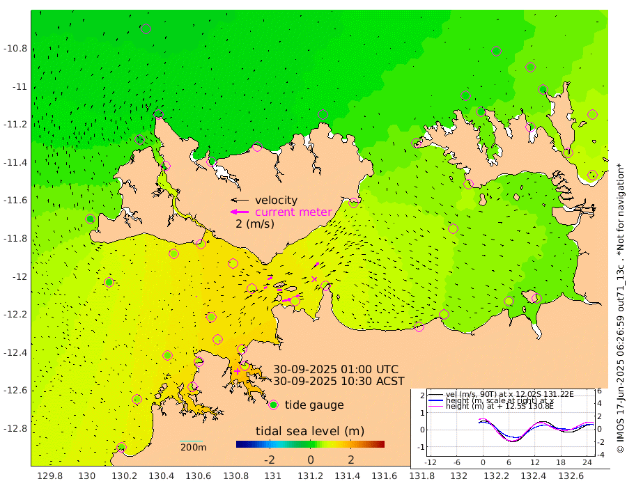 98cm/s 78T +4cm/s rms + 6cm/s 51T. Darwin_C1 52m 42cm/s 88T +4cm/s rms + 7cm/s -161T. Darwin_CW1 22m 32cm/s 75T +4cm/s rms + 8cm/s 61T. Darwin_CW2 34m 55cm/s 45T +3cm/s rms + 9cm/s 98T. Darwin_CW3 22m 52cm/s 90T +5cm/s rms + 7cm/s 88T. Darwin_C3 56m 55cm/s 64T +2cm/s rms + 9cm/s -126T. Darwin_CTbW 22m 4cm/s -48T +1cm/s rms + 1cm/s -47T. DARBGF 30m 9cm/s -15T +4cm/s rms + 3cm/s 80T. NRSDAR 19m -11cm Goodrich Bank 45cm Point Jenny 45cm Native Point 44cm Fish Reef 62cm Tapa Bay 7cm Point Fawcett (Offshore) 63cm Burge Point 53cm Munkunuwa 25cm Beagle A 82cm Parsons Bank 55cm Fenton Patches 84cm Hancox Shoal Area 79cm Nightcliff 87cm Darwin 70cm Charles Point Patches 70cm Glyde Point 63cm Chambers Bay 66cm Point Stuart 66cm Cape Hotham 58cm Christine Reef 69cm West Alligator Head 63cm East Field Island 61cm Two Hills Bay 56cm Camp Point 59cm Medina Inlet South 13cm South Barlow Point -5cm St. Asaph Bay -9cm Cape Van Dieman 3cm Snake Bay -8cm Cache Point 7cm Point Jahleel (Off) 35cm Cape Don 20cm Port Essington 20cm Smith Point - West 26cm NW Peacock Island 10cm North Of Jones Shoal 6cm Peacock Island 59cm Point David 31cm D'urville Point 60cm Copeland Island 50cm One Tree Point