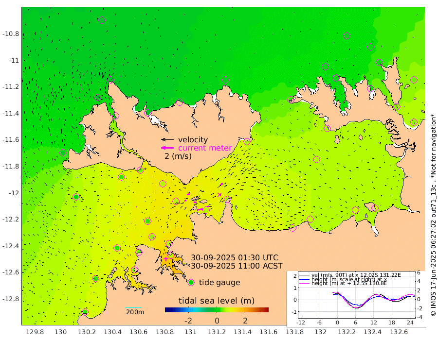 89cm/s 78T +4cm/s rms + 6cm/s 51T. Darwin_C1 52m 35cm/s 90T +4cm/s rms + 7cm/s -161T. Darwin_CW1 22m 25cm/s 75T +4cm/s rms + 8cm/s 61T. Darwin_CW2 34m 55cm/s 43T +3cm/s rms + 9cm/s 98T. Darwin_CW3 22m 43cm/s 91T +5cm/s rms + 7cm/s 88T. Darwin_C3 56m 50cm/s 65T +2cm/s rms + 9cm/s -126T. Darwin_CTbW 22m 11cm/s -78T +1cm/s rms + 1cm/s -47T. DARBGF 30m 15cm/s -38T +4cm/s rms + 3cm/s 80T. NRSDAR 19m -27cm Goodrich Bank 23cm Point Jenny 23cm Native Point 23cm Fish Reef 40cm Tapa Bay -13cm Point Fawcett (Offshore) 39cm Burge Point 28cm Munkunuwa 3cm Beagle A 60cm Parsons Bank 34cm Fenton Patches 65cm Hancox Shoal Area 60cm Nightcliff 65cm Darwin 45cm Charles Point Patches 62cm Glyde Point 71cm Chambers Bay 77cm Point Stuart 65cm Cape Hotham 64cm Christine Reef 84cm West Alligator Head 83cm East Field Island 64cm Two Hills Bay 57cm Camp Point 35cm Medina Inlet South -9cm South Barlow Point -25cm St. Asaph Bay -26cm Cape Van Dieman -15cm Snake Bay -23cm Cache Point -6cm Point Jahleel (Off) 26cm Cape Don 7cm Port Essington 8cm Smith Point - West 14cm NW Peacock Island -2cm North Of Jones Shoal 2cm Peacock Island 50cm Point David 18cm D'urville Point 53cm Copeland Island 42cm One Tree Point