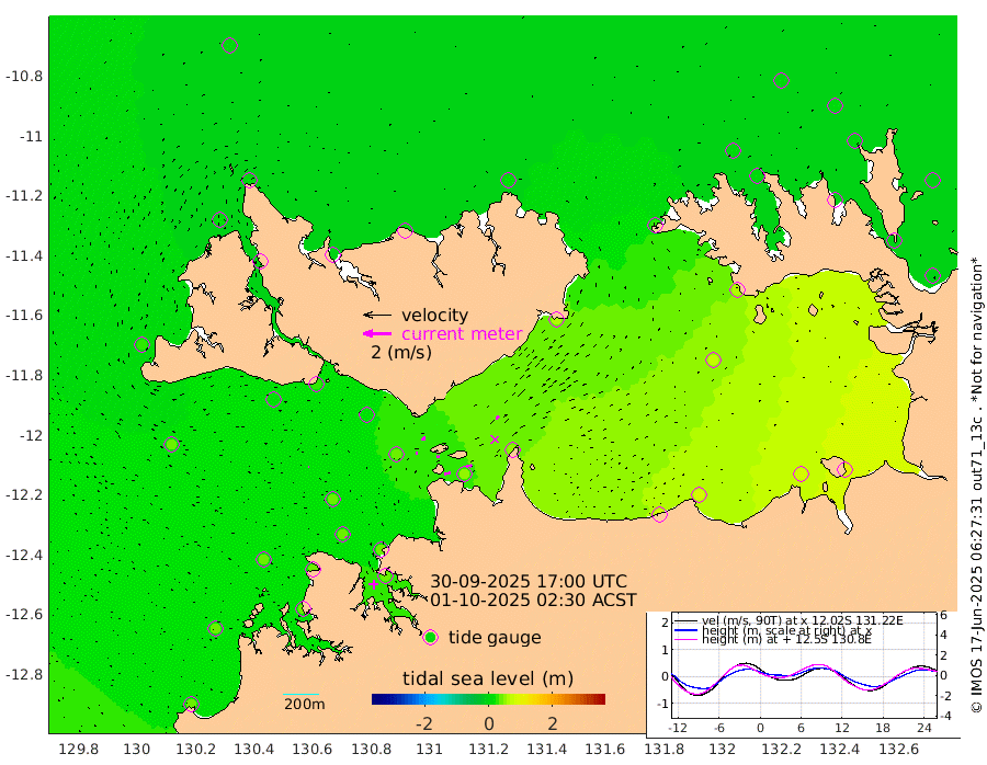 43cm/s 77T +4cm/s rms + 6cm/s 51T. Darwin_C1 52m 44cm/s 91T +4cm/s rms + 7cm/s -161T. Darwin_CW1 22m 11cm/s 75T +4cm/s rms + 8cm/s 61T. Darwin_CW2 34m 30cm/s 43T +3cm/s rms + 9cm/s 98T. Darwin_CW3 22m 22cm/s 93T +5cm/s rms + 7cm/s 88T. Darwin_C3 56m 30cm/s 67T +2cm/s rms + 9cm/s -126T. Darwin_CTbW 22m 4cm/s -66T +1cm/s rms + 1cm/s -47T. DARBGF 30m 8cm/s -49T +4cm/s rms + 3cm/s 80T. NRSDAR 19m 6cm Goodrich Bank 40cm Point Jenny 37cm Native Point 38cm Fish Reef 38cm Tapa Bay 26cm Point Fawcett (Offshore) 35cm Burge Point 14cm Munkunuwa 38cm Beagle A 20cm Parsons Bank 43cm Fenton Patches 34cm Hancox Shoal Area 43cm Nightcliff 36cm Darwin 37cm Charles Point Patches 53cm Glyde Point 82cm Chambers Bay 79cm Point Stuart 52cm Cape Hotham 76cm Christine Reef 90cm West Alligator Head 105cm East Field Island 60cm Two Hills Bay 61cm Camp Point 31cm Medina Inlet South 6cm South Barlow Point 13cm St. Asaph Bay 3cm Cape Van Dieman -1cm Snake Bay 12cm Cache Point 12cm Point Jahleel (Off) 25cm Cape Don 5cm Port Essington 6cm Smith Point - West 2cm NW Peacock Island 7cm North Of Jones Shoal 1cm Peacock Island -8cm Point David 0cm D'urville Point -8cm Copeland Island -2cm One Tree Point