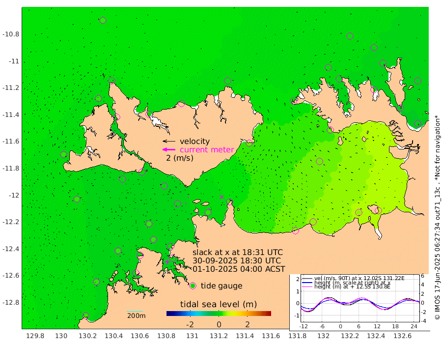 24cm/s -103T +4cm/s rms + 6cm/s 51T. Darwin_C1 52m 16cm/s 93T +4cm/s rms + 7cm/s -161T. Darwin_CW1 22m 9cm/s -118T +4cm/s rms + 8cm/s 61T. Darwin_CW2 34m 6cm/s -44T +3cm/s rms + 9cm/s 98T. Darwin_CW3 22m 2cm/s 117T +5cm/s rms + 7cm/s 88T. Darwin_C3 56m 12cm/s -121T +2cm/s rms + 9cm/s -126T. Darwin_CTbW 22m 5cm/s -83T +1cm/s rms + 1cm/s -47T. DARBGF 30m 4cm/s -98T +4cm/s rms + 3cm/s 80T. NRSDAR 19m 25cm Goodrich Bank 25cm Point Jenny 24cm Native Point 27cm Fish Reef 21cm Tapa Bay 31cm Point Fawcett (Offshore) 21cm Burge Point 3cm Munkunuwa 32cm Beagle A 0cm Parsons Bank 26cm Fenton Patches 10cm Hancox Shoal Area 14cm Nightcliff 18cm Darwin 27cm Charles Point Patches 32cm Glyde Point 50cm Chambers Bay 48cm Point Stuart 31cm Cape Hotham 41cm Christine Reef 53cm West Alligator Head 68cm East Field Island 35cm Two Hills Bay 43cm Camp Point 19cm Medina Inlet South 15cm South Barlow Point 25cm St. Asaph Bay 22cm Cape Van Dieman 17cm Snake Bay 27cm Cache Point 21cm Point Jahleel (Off) 20cm Cape Don 13cm Port Essington 9cm Smith Point - West 7cm NW Peacock Island 16cm North Of Jones Shoal 4cm Peacock Island -7cm Point David 3cm D'urville Point -9cm Copeland Island -1cm One Tree Point