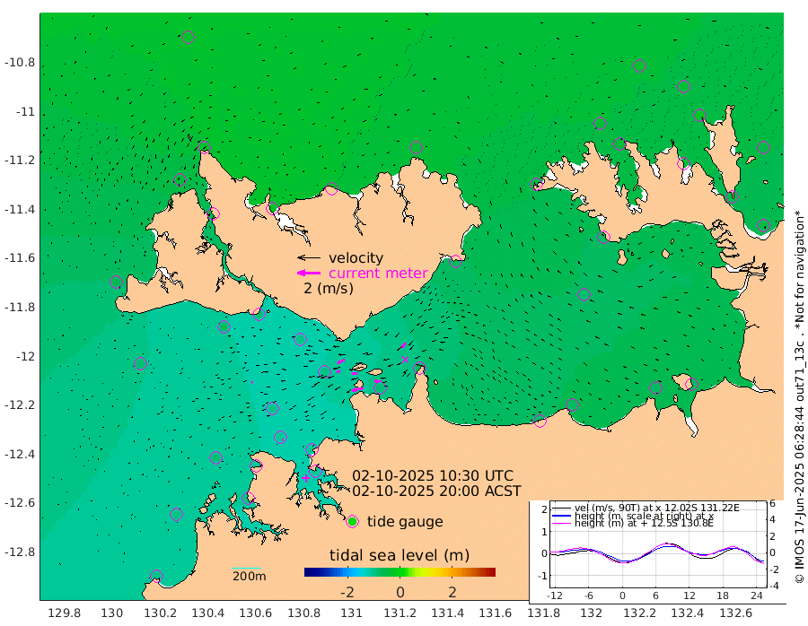 105cm/s -102T +4cm/s rms + 6cm/s 51T. Darwin_C1 52m 56cm/s -90T +4cm/s rms + 7cm/s -161T. Darwin_CW1 22m 33cm/s -107T +4cm/s rms + 8cm/s 61T. Darwin_CW2 34m 55cm/s -133T +3cm/s rms + 9cm/s 98T. Darwin_CW3 22m 42cm/s -89T +5cm/s rms + 7cm/s 88T. Darwin_C3 56m 69cm/s -116T +2cm/s rms + 9cm/s -126T. Darwin_CTbW 22m 14cm/s -96T +1cm/s rms + 1cm/s -47T. DARBGF 30m 9cm/s -74T +4cm/s rms + 3cm/s 80T. NRSDAR 19m -26cm Goodrich Bank -98cm Point Jenny -97cm Native Point -88cm Fish Reef -103cm Tapa Bay -60cm Point Fawcett (Offshore) -97cm Burge Point -75cm Munkunuwa -84cm Beagle A -92cm Parsons Bank -100cm Fenton Patches -101cm Hancox Shoal Area -107cm Nightcliff -103cm Darwin -101cm Charles Point Patches -89cm Glyde Point -86cm Chambers Bay -75cm Point Stuart -76cm Cape Hotham -83cm Christine Reef -78cm West Alligator Head -76cm East Field Island -71cm Two Hills Bay -76cm Camp Point -89cm Medina Inlet South -47cm South Barlow Point -40cm St. Asaph Bay -28cm Cape Van Dieman -29cm Snake Bay -33cm Cache Point -36cm Point Jahleel (Off) -57cm Cape Don -40cm Port Essington -42cm Smith Point - West -41cm NW Peacock Island -32cm North Of Jones Shoal -12cm Peacock Island -51cm Point David -44cm D'urville Point -51cm Copeland Island -48cm One Tree Point