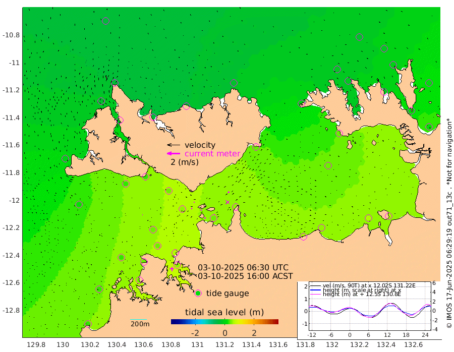 21cm/s 78T +4cm/s rms + 6cm/s 51T. Darwin_C1 52m 8cm/s 90T +4cm/s rms + 7cm/s -161T. Darwin_CW1 22m 14cm/s 70T +4cm/s rms + 8cm/s 61T. Darwin_CW2 34m 23cm/s 33T +3cm/s rms + 9cm/s 98T. Darwin_CW3 22m 13cm/s 89T +5cm/s rms + 7cm/s 88T. Darwin_C3 56m 10cm/s 65T +2cm/s rms + 9cm/s -126T. Darwin_CTbW 22m 2cm/s 80T +1cm/s rms + 1cm/s -47T. DARBGF 30m 4cm/s 107T +4cm/s rms + 3cm/s 80T. NRSDAR 19m -41cm Goodrich Bank 28cm Point Jenny 26cm Native Point 30cm Fish Reef 40cm Tapa Bay -11cm Point Fawcett (Offshore) 37cm Burge Point 25cm Munkunuwa 18cm Beagle A 40cm Parsons Bank 43cm Fenton Patches 51cm Hancox Shoal Area 57cm Nightcliff 48cm Darwin 36cm Charles Point Patches 45cm Glyde Point 58cm Chambers Bay 52cm Point Stuart 47cm Cape Hotham 41cm Christine Reef 57cm West Alligator Head 60cm East Field Island 36cm Two Hills Bay 40cm Camp Point 28cm Medina Inlet South -20cm South Barlow Point -28cm St. Asaph Bay -39cm Cape Van Dieman -37cm Snake Bay -36cm Cache Point -23cm Point Jahleel (Off) 0cm Cape Don -18cm Port Essington -17cm Smith Point - West -15cm NW Peacock Island -25cm North Of Jones Shoal -7cm Peacock Island 11cm Point David -11cm D'urville Point 16cm Copeland Island 3cm One Tree Point